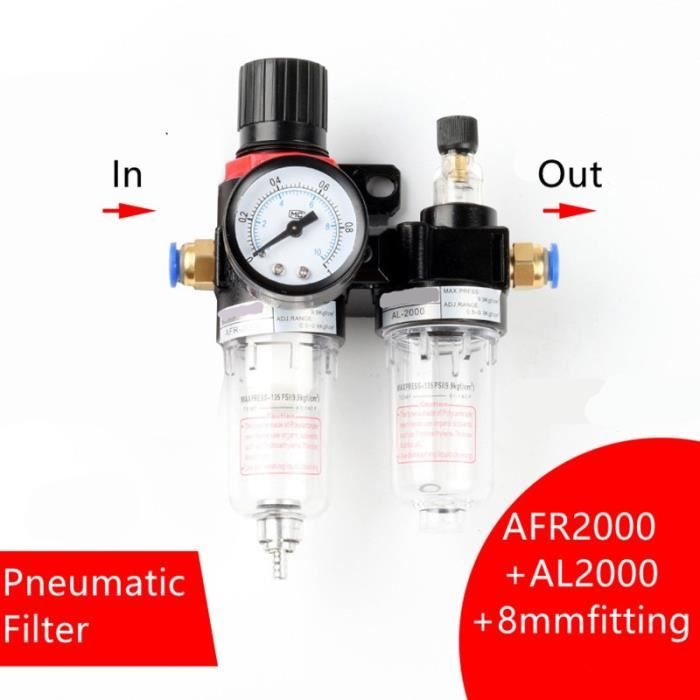 AFR2000 1/4 séparateur D'eau D'huile, 0.5-9.0Kgf 1.5MPa Filtres pour liquide de refroidissement Séparateur Eau Huile Air Comprimé Garosa Régulateur Huile-eau 1 / 4in AFR2000 Séparateur Huile-eau Filtre Filtre AFR-2000 Détendeur de gaz Régulateur pneumatique Compresseur d'air Séparateur d... Filtre pour compresseur d'air pneumatique, régulateur de pression...