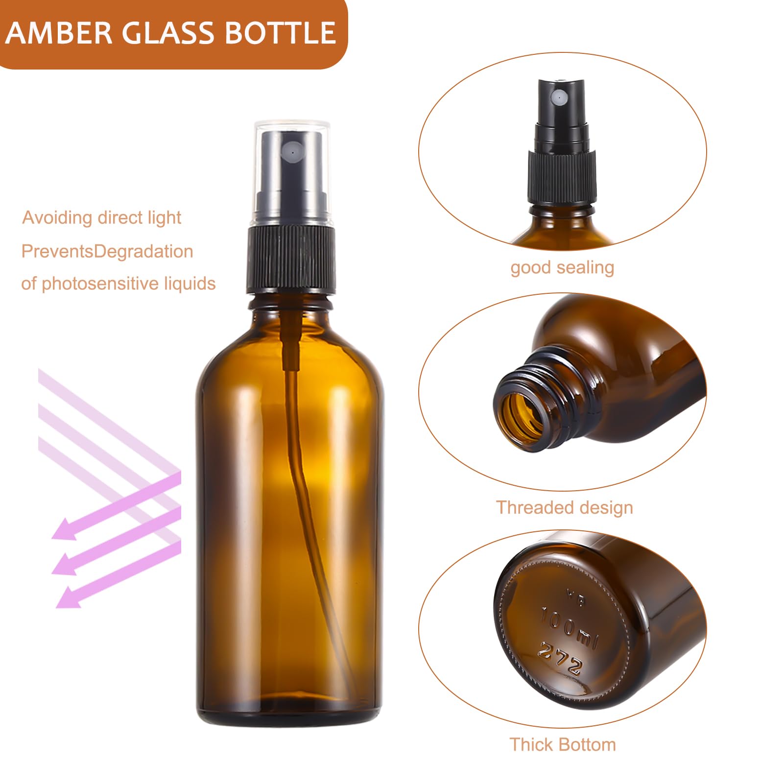 THE ESSENTIAL ATOMIZER COMPANY Divo Vaporisateur de parfum en verre rechargeable avec pompon noir et douille argentée 46 ml Livré avec entonnoir Flacons et vaporisateurs vides Bouteilles Spray 100ml Flacons Ambrés Huiles Essentielles ALIFEIA 6 100ml - Huiles Essentielles, Cosmétiques, Nettoyage Bouteilles Verre Ambré 100ml Flacons Vaporisateurs Verre Ambré Lot de 3 vaporisateurs de parfum en verre ambré de 100 ml Matériau : nos vaporisateurs en verre ambré sont fabriqués en verre épais de haute qualité et sont produits à des températures ultra élevées. Mini flacons compte-gouttes vides en verre ambré - De 10 à 100 ml... Contenu de l'emballage : 3 flacons vides en verre ambré de 100 ml, 4 buses de pulvérisation, 4 autocollants, 1 entonnoir, 1 compte-gouttes. Design étanche : nos buses de flacon pulvérisateur en verre sont fabriquées en polypropylène de haute qualité. 【Une variété d'utilisations】Nos vaporisateurs en verre sont adaptés pour le nettoyage, les huiles essentielles, l'aromathérapie, l'eau de rose, les sprays pour le visage, les sprays corporels, les sprays hydratants pour les cheveux. Protection UV : le flacon en verre ambré peut empêcher les rayons UV de décomposer le contenu de la bouteille, permettant au contenu d'être conservé pendant une plus longue période.