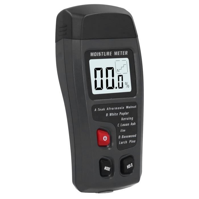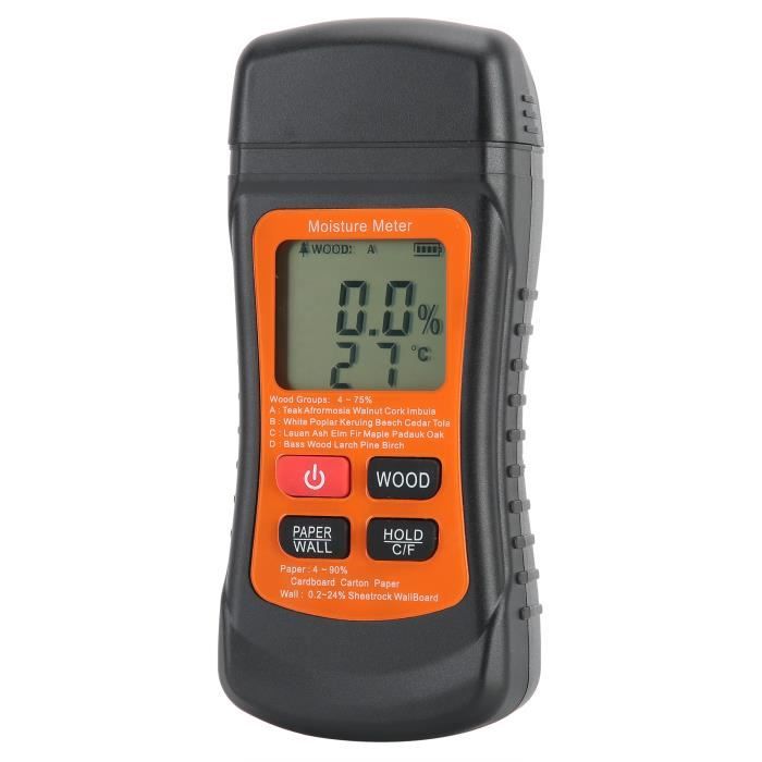 ZJCHAO Humidimètre pour bois Humidimètre de Bois, Humidimètre pour Murs Détecteur d'humidité : un détecteur d'humidité est un excellent outil pour les propriétaires de maison, les charpentiers, les éditeurs de sol et les inspecteurs. Testeur Humidité Bois De Chauffage Parquet Humidimètre Pour Bois - Humidimètre Pour Bois - Pour Bois De Chauffage Bois De Chauffage Bois De Chauffage Jaune 80790822 Humidimètre Portable LCD 0.1 Humidimètre Poids : 67 g Humidimètre Dimensions : 130 x 45 x 27 mm Proster Humidimètre Numérique à Broche Remplaçables Haute Précision 4 Modes(Bois Tendre/Dur,Bâtiment,Emballage),Écran LCD Couleur Testeur Humidité Portable... Grâce à son capteur importé, il détecte l'humidité de manière non destructive, sans endommager le matériau testé. Il utilise des signaux d'ondes... ➤➤【Grand écran LCD】Humidimètre avec un écran spacieux pour des indicateurs d'humidité clairs et faciles à lire, l'humidimètre améliore la facilité d'utilisation. Humidimètre portable : hygromètre en bois design compact, hygromètre pour bois, poids léger, humidimètre pour bois 130 x 45 x 27 mm, 67 g, humidimètre pour bois, facile à utiliser et à transporter. Humidimètre : il mesure la teneur en humidité des sols en bois dur, des armoires, des meubles, du bois, des poutres, du contreplaqué, des panneaux, des cadres de fenêtre, du bois forestier, des matériaux de construction et d'autres produits en bois. Résolution de l'humidimètre : 0,10 %. Notre détecteur d'humidité numérique offre un affichage de la température en C/F, une fonction d'arrêt automatique après 10 minutes, le verrouillage des données et un avertissement de batterie faible. Détecteur d'humidité - Paramètres techniques : Détecteur d'humidité - Couleur : noir.