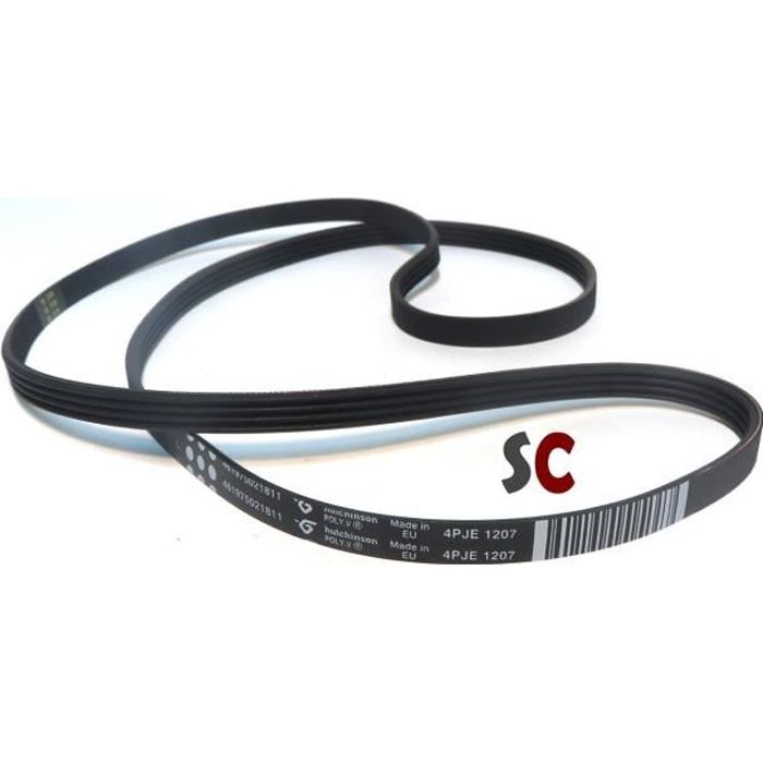 5PJE 1256 courroie HUTCHINSON pour lave linge Pour retirer l’ancienne courroie sans risque de pincement, saisissez-la fermement juste avant qu’elle ne s’emmanche sur la grande poulie. Courroie Lave-linge 4PJ1270 Hutchinson - Courroie De Lave-linge 1270 PHE Courroie Machine A Laver Une courroie neuve peut sembler trop courte, mais sa souplesse facilite son montage (voir notre vidéo didactique pour changer et monter la courroie facilement). COURROIE 1245H8 POLY V pour lave linge THOMSON 5PJE 1205 courroie HUTCHINSON pour lave linge Faites tourner lentement la grande poulie tout en accompagnant la courroie pour qu’elle se mette en place facilement. Tirez-la vers vous tout en faisant tourner la poulie. L’élasticité de la courroie permet une installation rapide. Pose facile et rapide pour une performance optimale et durable. La courroie glissera alors hors de son logement. Compatible avec INDESIT / ARISTON / BOSCH-SIEMENS.