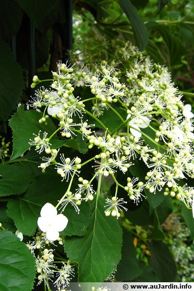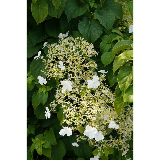 vente d'hortensia grimpant (hydrangea anomala petiolaris Floraison du printemps à l'été avec des fleurs blanches en grappes. Hortensia Grimpant Gamm Vert Hortensia Grimpant Ou Hydrangea Petiolaris - Meilland Richardier Hydrangea Grimpant Caractéristiques : Plante grimpante à feuilles caduques idéale pour les murs, les clôtures, les pergolas, les arches, les obélisques. L' hortensia grimpant, ou Hydrangea, est une plante grimpante moins connue, mais tout aussi spectaculaire que les chèvrefeuilles, jasmins et passiflores ! Leurs ombelles de couleurs recouvrent vos murs, grillages et treillis de juin à septembre. Ce sont leurs racines aériennes, en forme de crampons, qui leur permettent de s'attacher solidement L'Hortensia grimpant (Hydrangea petiolaris) est la solution parfaite pour habiller avec élégance vos murs, pergolas ou grands arbres tout en créant un spectacle floral enchanteur. Cette plante grimpante vigoureuse se distingue par ses magnifiques fleurs blanches en forme de dentelle qui illuminent les zones ombragées de mai à juillet, offrant un charme unique à votre jardin... Plantez-le dans un sol fertile et bien drainé composé d'argile, de limon ou de sable et ne laissez pas sécher pendant que la plante s'établit. Croissance et Étalement : Hauteur ultime de 15 m et étalement maximum de 3 m. Période d'intérêt : Fleurs de juin à août. Bien qu'il soit lent à s'établir, une fois installé, il poussera à un rythme régulier, prêt à couvrir des murs ou des surfaces peu esthétiques, à grimper sur des clôtures, des arches, des obélisques et des pergolas, ou à se répandre gracieusement sur un arbre. Soins et entretien : Votre hortensia prospérera en plein soleil ou à l'ombre tamisée, mais il est tolérant à l'ombre. L'Hydrangea Petiolaris est une variété jolie, résistante et entièrement rustique de la plante grimpante populaire.