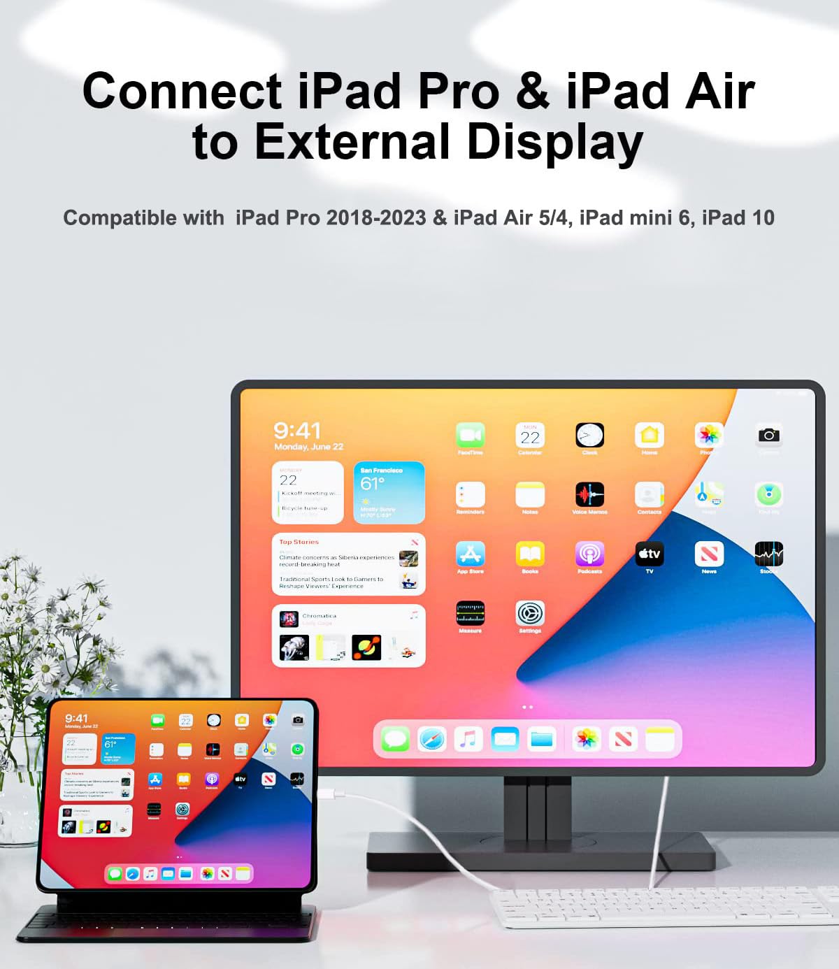 Vous pourrez connecter vos appareils à votre téléviseur depuis votre canapé ou votre lit, à la maison ou à l'hôtel. Connexion 8K 60 Hz HDR Adaptateur USB-C Vers HDMI Certifié Apple MFi 4K @ 60 Hz Pour IPhone 16 15 MacBook Pro Air IPad Pro, Câble AV Numérique HDMI 2.0 Compatible Avec Samsung Galaxy S24 Adaptateur Lightning Hdmi Plug and Play : Aucun pilote supplémentaire ou application nécessaire. Le port USB C vers HDMI intégré 100 W USB-C PD fournit une charge rapide de l'appareil pour garantir que votre ordinateur portable, tablette ou téléphone est... Parfait pour le divertissement home cinéma, le bureau, l'exposition, la présentation, l'enseignement, le streaming vidéo, les jeux, etc. Expérience de jeu ultra-fluide 8K à 60 Hz : Taux de rafraîchissement élevés jusqu'à 8K à 60 Hz. USB C auf HDMI Adapter 4K@60Hz für iPhone 15/16/17, MFi-zertifizierter digitaler AV-Konverter mit 100W PD für MacBook Pro/Air, iPad Pro, iMac, Galaxy S25/S24... Compatible avec MacBook Pro M3/M3 Pro/M3 Pro Max, MacBook Pro/Air M1/M2/M3, MacBook Pro 2016 ou version ultérieure, MacBook Air 2018-2025 ou version ultérieure, MacBook 2015-2017, iMac 2017-2020 ou version ultérieure, iMac Pro, Mac mini 2018, Mac Pro 2018., 9., Compatible avec iPad Pro 2018-2025 ou version ultérieure, iPad Air 4/5, iPad mini 6/7 - Compatible avec Galaxy S25/ S24/ S23 / S22 Ultra / S22+ / S22 / S21 Ultra / S21+ / S21 / S20 Ultra / S20+ / S20 / S10+ / S10 / S10e / S9+ / S9 / S8+ / S8 / A90, Note 20 Ultra / 20 / 10+ / 10 / 9 / 8, Galaxy Tab S8 Ultra / S8+/ S8 / S7+ / S7 / S6 / S5e / S4, Galaxy Book et plus encore., Compatible avec Pixel 9 8 7 6 5 Compatible avec les systèmes : macOS, iOS, iPadOS, Windows, Android, Linux, chromeOS et plus encore. Large compatibilité : ce convertisseur HDMI Type-C est compatible avec les iPhone séries 17/16/15, MacBook Pro M3/M3 Pro/M3 Pro Max, MacBook Pro (2016-2025 ou ultérieur), MacBook Air (2018-2025 ou ultérieur), iMac M3, iMac (2017 ou ultérieur), iPad Pro (2018-2025 ou ultérieur), iPad Air (2020 ou ultérieur), Galaxy S25/S24/S23/22/S21/S20, Note 20, Tab S9/S8/S7, Dell XPS 17/15/13, LG V40/V35/V30/V20, etc. Câble USB-C Vers HDMI 1,8 M - Adaptateur 4K 60 Hz Pour Smartphone Tablette Et Ordinateur 99406998 Fonction : MacBook Clamshell Mode, Samsung Dex, MST Dasiy Chainning, G-Sync, FreeSync Moniteurs ultra larges : Compatible avec les moniteurs de rapport 21:9 jusqu'à 3440 x 1440 @ 144 Hz. Contenu : vous recevrez une clé USB-C vers HDMI 8K à 60 Hz certifiée MFi et une garantie de 12 mois.
