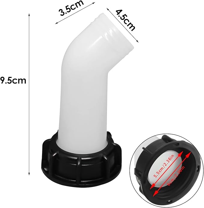 De plus, sa structure solide et sa grande stabilité garantissent un drainage stable et durable. La buse de sortie IBC s'adapte parfaitement aux réservoirs d'un diamètre intérieur d'environ 60 mm et d'un filetage extérieur d'environ 45 mm. Raccord Vanne Cuve IBC ZHIYUQL 2 PCS Bec De Vidange Avec Ecrou IBC, Buse De Réservoir D'eau Raccord S60x6 De RéServoir Buse Bouchon De Valve Valve Filetage IntéRieur Pour Réservoirs D'eau IBC Raccord Cuve 1000 Litres 3pcs Bec de Vidange avec Ecrou IBC 60mm Buse de Réservoir d'eau Raccord... Elle offre une excellente étanchéité, est totalement étanche et ne présente aucune fuite. Description du produit La buse de vidange IBC du robinet est équipée d'une interface filetée. 【Étanchéité】La buse de vidange IBC du robinet est équipée d'une interface filetée. Il est adapté aux raccords de vannes de pompe, aux raccords de conduites d'eau de 1 000 L et aux canalisations spéciales. 【Facile à installer】Notre tuyau de vidange pour réservoir d'eau IBC est livré avec une bonde, un écrou fileté et une rondelle en caoutchouc. Il est fabriqué en matériau ABS, qui présente les caractéristiques de résistance à la corrosion, de résistance aux hautes températures et d'une structure solide, garantissant un fonctionnement stable et à long terme. C'est un accessoire idéal pour les barils. Il est compatible avec les vannes de fixation de pompe, les conduites d'eau de 1 000 L et les drains spéciaux. Raccord de vanne de robinet : Le raccord de vanne de buse de réservoir d'eau IBC convient à la plupart des réservoirs IBC de tonnage, aux tuyaux de vidange spéciaux, aux machines à laver, aux éviers de cuisine, etc. Le bec de vidange avec écrou est fabriqué en plastique de... Il suffit d'insérer le clapet et de le serrer avec l'écrou-raccord sans difficulté. 【Largement utilisé】L'adaptateur IBC avec bec verseur offre un raccordement parfait aux réservoirs d'eau de pluie. Taille compatible Il convient à la plupart des réservoirs IBC avec filetage grossier S60X6., Outil d'irrigation idéal, le tuyau de vidange est équipé d'un flexible de vidange spécial. Raccord Cuve 1000 Litres 2 Buses De Vidange Réservoir IBC ZHIYUQL - Filetage Intérieur Raccord S60x6