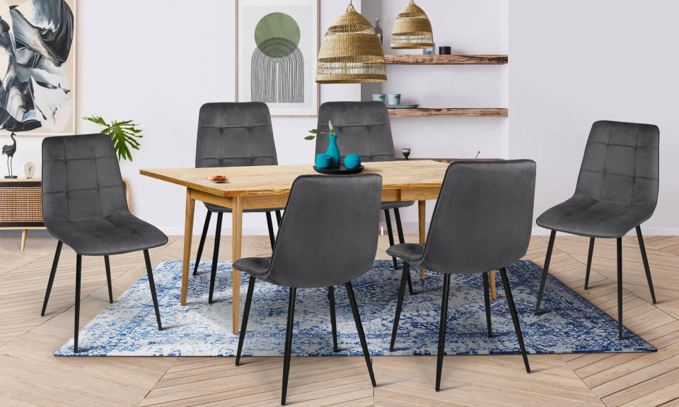 Grâce à leur style orignal, disposez les chaises où vous le souhaitez : cuisine, salle, bureau., ., ., Accordez-les facilement dans la pièce de votre choix pour une déco moderne dans votre maison ! Chaises En Velours Gris IDMARKET Lot De 4 Chaises ROBINE En PU Noires Pour Salle à Manger - Maison Bois Pas Cher Profitez de ces chaises ROBINE en velours gris foncé pour moderniser votre intérieur et apporter une touche vintage à votre décoration ! Découvrez ce lot de 6 chaises au design très tendance, idéal pour renouveler votre intérieur. Ces chaises ROBINE en velours gris foncé iront parfaitement dans votre salle à manger, cuisine, salon ou toute autre pièce de la maison. Elles disposent d'une assise très confortable et de 4 pieds en bois noir stables. Originales et tendance, elles viendront moderniser votre décoration Fonctionnelles, ces chaises en velours s'installent dans la pièce que vous souhaitez. Avec leur dossier et leur assise ergonomique, elles pourront servir de chaises de bureau ou de réception dans votre salon. IDMARKET Lot de 6 chaises MILA en velours gris clair pour salle à... Leurs pieds en bois noir apporteront un coté moderne et élégant à votre pièce ! Aménagez un coin repas chic et tendance avec ce lot de 6 chaises. Lot de 6 chaises en velours au design moderne à petit prix pour une déco tendance et chic ! Lot 4 Chaises Lestarain 4 Chaises Velours ROBINE IDMarket - Gris Foncé Pieds Noirs - Style Rétro Lot 4 Chaises Moderne Leur forme arrondie et leur coloris sobre iront idéalement chez vous. Parfaitement stables, elles sont dotées de 4 pieds noirs en bois à la forme biseautée