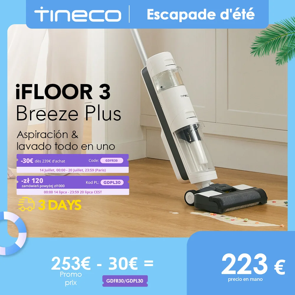 Le iFLOOR 3 Breeze Plus est équipé d’un moteur brushless digital à faible bruit et emploie des matériaux uniques qui réduisent le bruit. Tineco iFloor 3 Breeze Plus Aspirateur Laveur Sec Huide, Nettoyeur de Sol sans Fil et... Le iFLOOR 3 Breeze Plus de Tineco aspire et lave vos sols durs simultanément. Auto-nettoyage sans intervention Il ne vous suffit que d’un clic pour garder le tube et la brosse propres et sans odeur. Nettoyeur Sol Sec Humide Breeze Plus Aspirateur Laveur Sec Humide Tineco Ifloor 3 Le iFLOOR 3 Breeze Plus est livré avec une station d’accueil compacte et pratique pour stocker et recharger l’appareil. Tineco ifloor 3 Breeze Plus Vidéo de marchand Il vous aide à vous déplacer librement et devient votre partenaire idéal pour le nettoyage de votre maison de taille intermédiaire. Il est facile à ranger dans les espaces exigus, mais ne fait aucun compromis sur la performance de nettoyage. Contrairement à toutes les autres méthodes de nettoyage, notre technologie à double réservoirs vous permet de toujours nettoyer vos sols avec de l’eau propre. Aspirez et lavez simultanément Gagnez du temps et de l’effort en aspirant et lavant vos sols en une seule fois. 1 Aspire et lave tout-en-un 2 Léger 3 Auto-nettoyage Le iFLOOR 3 Breeze Plus de Tineco aspire et lave vos sols durs simultanément. Il est facile à ranger dans les espaces exigus, mais ne fait aucun compromis sur la performance de nettoyage. Léger, sans-fil et puissant, le iFloor 3 Breeze Plus enlève toutes les tâches, même les plus tenaces, de vos sols 1 Séchage rapide 2 Récupération d'eau élevée Après avoir nettoyé vos sols, posez votre iFLOOR 3 Breeze Plus sur sa station de recharge et lancez le cycle d’auto nettoyage pour garder le tube et la brosse propres et sans odeur. Aspirateur sec et humide : lequel choisir en 2025 ? - France