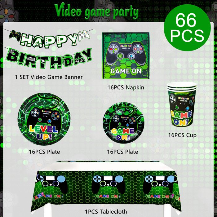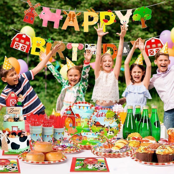 68 Pièces Vaisselle De Fête - INBOXXARTY - Jeu Vidéo - 16 Assiettes - 16 Gobelets - Décoration Enfant - Maison Vaisselle Jetable Thème Ferme Tractor Ensemble De Vaisselle - 40 Pièces Farm Animal Grange Party Fournitures, Comprend Des Assiettes Et Des Serviettes Pour La Décor D' anniversaire De Green Tractor Kids Pour 10 Personnes Vaisselle Anniversaire Ferme , 71 Pièces Vaisselle De Fête Set De Ferme... Tous les produits sont en papier alimentaire de haute qualité, sans danger pour les enfants Gain de temps et commodité : Organisez votre fête sans corvée ! Cette vaisselle (assiettes, serviettes et gobelets) élimine la vaisselle et les nettoyages difficiles. Contenu du kit et utilisation clé : Kit décoration anniversaire 68 pièces sur le thème tracteur de ferme ! Polyvalence d'utilisation : Idéal pour les anniversaires mais aussi : rentrée scolaire, fêtes d’enfant, mariages, baby-shower, pique-niques ou réunions familiales. Effet décoratif et harmonisation globale : Insufflez une créativité parfaite et une ambiance animée à votre fête d'anniversaire ! Ce kit 68 pièces garantit praticité et ambiance joyeuse, vous laissant plus de moments à partager avec vos proches plutôt qu’à nettoyer hicoosee 100 PCS Dino Jetable Vaisselle de Fête avec Unique Decoration...