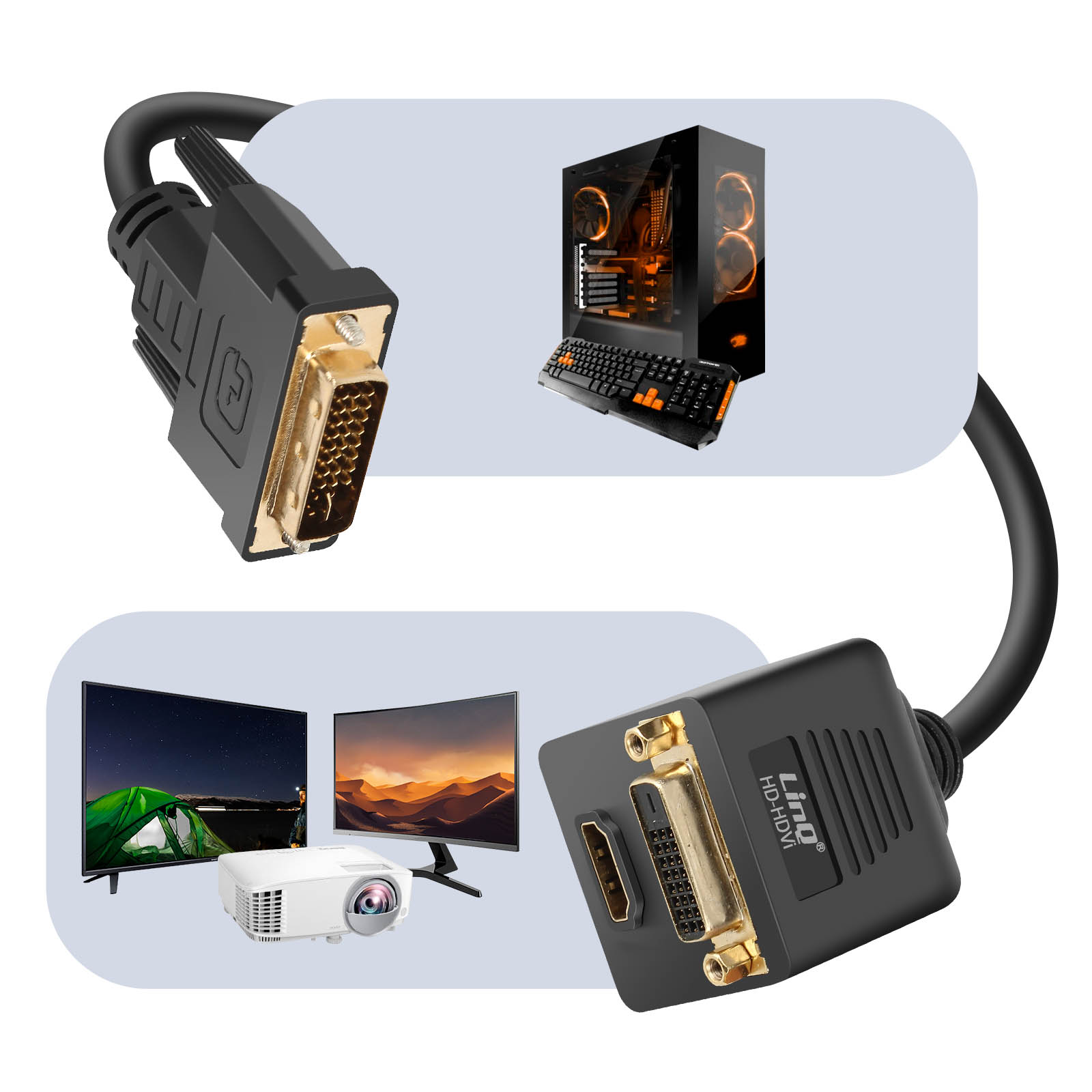 Adaptateur DVI Vers HDMI INN Femelle-mâle Convertisseur DVI Vers HDMI Connecteur Dvi Mâle Hdmi Femelle Comment convertir HDMI en DVI-D - Fiche pratique sur Adaptateur convertisseur DVI-D mâle vers HDMI femelle 19 broches. 1) La taille portable et le poids extrêmement léger permettent d'emporter cet adaptateur... Doté d'un connecteur DVI-D mâle d'un côté et d'une sortie HDMI femelle de l'autre, cet adaptateur noir robuste assure une transmission stable du signal numérique. La construction solide en plastique noir protège efficacement les composants internes tout en assurant une connexion fiable. COMPATIBILITÉ UNIVERSELLE: Adaptateur bidirectionnel convertissant les signaux DVI-D mâle vers HDMI femelle, idéal pour connecter des appareils DVI à des écrans HDMI Découvrez notre adaptateur DVI-D vers HDMI, la solution parfaite pour connecter vos appareils numériques. QUALITÉ DE TRANSMISSION: Interface dorée à 19 broches assurant une connexion stable et une transmission de signal fiable INSTALLATION SIMPLE: Système plug-and-play ne nécessitant aucun pilote ou logiciel supplémentaire CONSTRUCTION ROBUSTE: Boîtier en plastique durable avec connecteurs plaqués or pour une utilisation prolongée Il est bidirectionnel que vous pouvez connecter un hôte équipé d'un HDMI à un moniteur équipé de DVI ou transmettre des signaux de haute qualité d'un hôte compatible DVI à un moniteur compatible HDMI