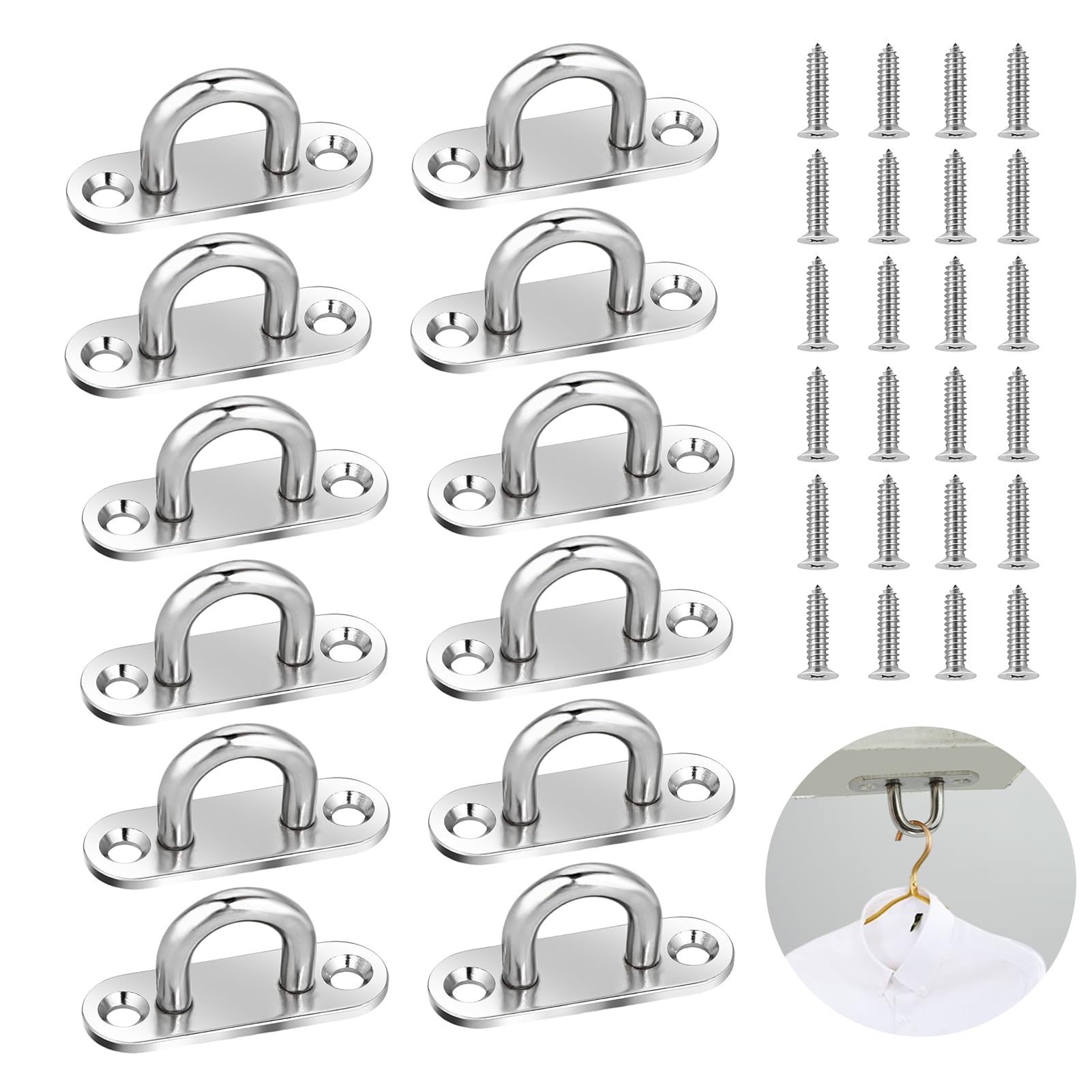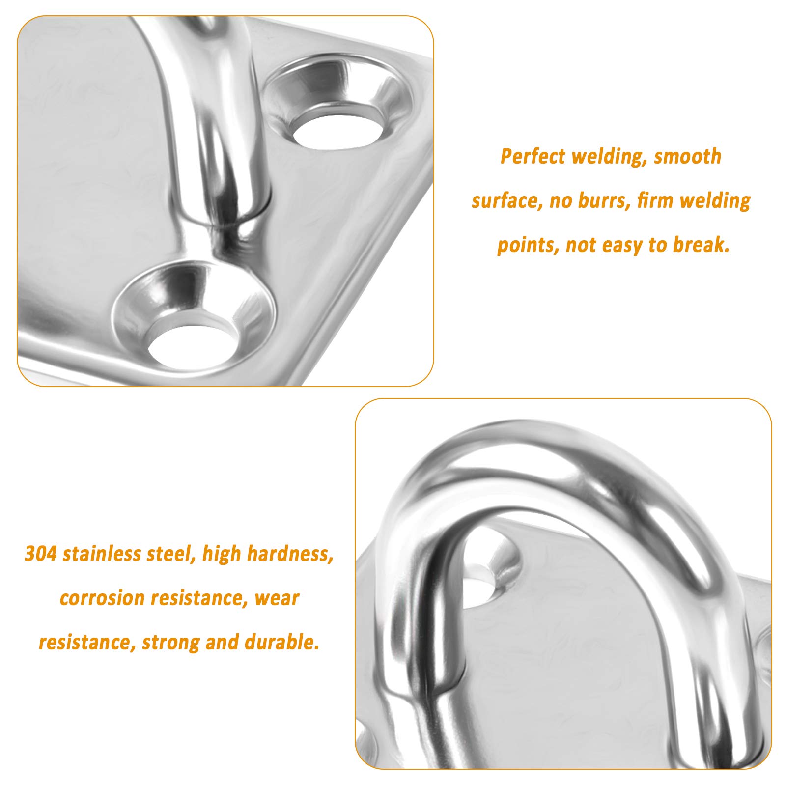 Spécifications : Matériau : Acier inoxydable 304 Taille : 3,5 x 3 x 2,5cm / 1,38 × 1,18 × 0,98 pouces Couleur : Argent Style : Plaque à oeil carrée Usage : Suspension ou fixation d'objets Caractéristiques : Résistante à la rouille et à la corrosion, durable, haute résistance, forte capacité de charge ontenu du paquet : 12 Plaques à Orifice M5 en Acier Inoxydable 4 Pcs Plaque à Oeillet 6mm Pontet INOX Marine en Acier Inoxydable 304 Plaque à Oeillet Durable... Les plaque oeillet en 304 acier inoxydable Que ce soit pour suspendre des objets lourds ou fixer des articles, elles peuvent être utilisées de manière fiable pendant de longues périodes. Plaque à œillet Inox Pour Fixation 12 Stück Pontet INOX, Crochet INOX, Plaque à Oeil En Acier Plaque Fixation Suspension 50kg La surface est brillante, lisse et sans aspérités, garantissant une durabilité à long terme. Vous cherchez encore des accessoires de suspension durables et pratiques ? Ce set de 12 crochet inox pour toile est exactement votre choix idéal ! MATÉRIAU DE PREMIÈRE QUALITÉ : Les plaque à œil en acier inoxydable avec œillet sont fabriquées en acier inoxydable 304 de haute qualité, offrant une résistance à la rouille, à la corrosion et une haute résistance mécanique. CONCEPTION PRATIQUE : Les oeillet plaque offrent d'excellentes performances de charge. Les pinces métalliques présentent une structure de crochet fermé, sûre et fiable. ② Les plaque à oeillet présentent une structure fermée pour les pinces métalliques, chaque crochet étant capable de supporter environ 50 kilogrammes. ③ Les étapes d'installation de nos oeillet de fixation sont très simples : percer un trou, insérer la vis, placer le crochet et serrer. Les pontets sur platine inox offrent une fixation solide et sécurisée pour vos équipements de bateau. Leur conception à platine permet une installation facile et rapide, tout en assurant une répartition uniforme de la charge ① Fabriquées en acier inoxydable 304 avec une technologie de soudage au point de fusion naturel, nos plaque à oeil inox m5 sont résistantes à la rouille et à la corrosion, avec une haute résistance mécanique. SCÉNARIOS D'APPLICATION ÉLARGIS : Les plaque à œil en acier M5 ont une large gamme d'utilisations. 12 Pièces Platine Oeil INOX M5 Platine Ancrage INOX Crochet Oeillet INOX Plaque à ¿illet