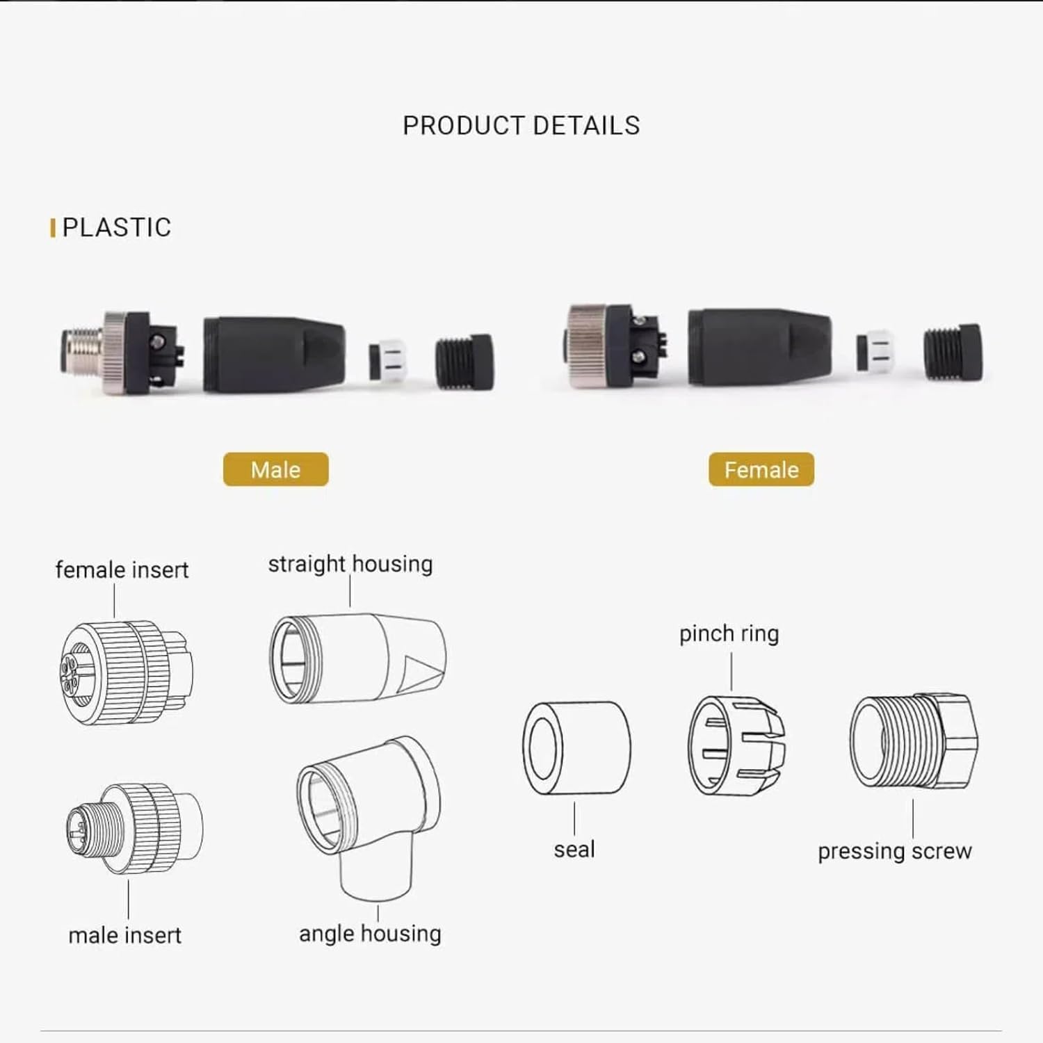 14.235.60 Connecteur étanche en plastique mâle 3 pôles - Lot de 5 Plage de température : de -25 °C à 85 °C. Connecteur M12 Vers Rj45 Bayzconn M8 3 Pôles Mâle Connecteur, IP67 Étanche A Codés Droits 3 Broches Sur Place à Vis Capteur 8mm M8 3 Core Connecteurs Ronds Accessoires Pour L'automatisation Industrielle 60V 4A AC/DC Connecteur Industriel étanche Codage A Type de butée : vis Tension nominale : 60 V., Courant nominal : 4 A. Connecteur mâle M12 4 pôles coudé avec bornes à vis - STE-1204-W Connecteur De Câble Circulaire Étanche,8 Broches M12 À Rj45,Pour Câble... [Signal de Transmission Stable]: le connecteur d'aviation circulaire M12 à 8 broches adopte du caoutchouc noir de haute qualité, ce qui le rend isolant et ignifuge; Mécanisme de verrouillage fileté, conception de verrouillage antivibratoire, connecteur fileté 12mm durable tout en garantissant la stabilité et la fiabilité des données et des signaux Connecteurs : laiton plaqué or. plage de température: - 25°C à 85°C Type de connexion : câblable., Codage: A Codage. Matériau du boîtier : PA6., Contenu : 2 fiches mâles M12 8 broches Spécifications : Série : M12 8 broches mâle., Panneau : non blindé.