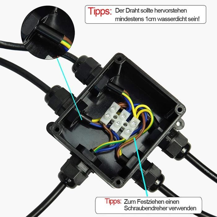 Boite Derivation Etanche Boîte De Dérivation IP68 Extérieur,Boîte Jonction Etanche,Connecteur De Boite De Derivation Electrique Boîte de dérivation étanche (2 CLASSE DE PROTECTION IP68: La boîte de jonction IP68 étanche, super étanche, antipoussière et durable, est destinée à protéger contre la poussière, la corrosion... Le design est non seulement beau et généreux, mais aussi robuste et durable., 3., Cette boîte de jonction montée en surface est principalement utilisée pour l'électricité, les communications, l'électronique, l'électricité et les chantiers de construction intérieurs et extérieurs. Caractéristiques: Matériau de la coque : ABS Niveau d'étanchéité : IP65 Taille: 200*120*75MM Couleur: blanche Contenu du colis: Comme le montre la figure Scénarios d'utilisation: Boîte de jonction Idéale pour la pose et le serrage sûr des câbles électriques, pour l'installation en toute sécurité de prises, lumières et interrupteurs dans le sous-sol, le garage ou l'atelier. Boîte de Dérivation Étanche Exterieur,Boîte de Jonction Étanche IP68,Boite de Derivation Electrique,Boîte de Connexion Electrique Exterieur pour Sol Humides Projets de Bricolage(20*12*7., 5cm) Caractéristiques: 1., L'ensemble de boîtes de jonction est équipé de borniers sur rail DIN utilise des matériaux de structure ABS-PVC et PC ignifuges, ce qui confère au produit une meilleure sécurité et fiabilité., 2., Boîte de jonction étanche avec interrupteur, pour montage encastré/en surface, le panneau de montage du produit peut être démonté et installé plusieurs fois. Le boîtier en plastique de la boîte de jonction ABS est fortement ignifuge et bien isolé, anti-corrosion, antistatique, bonne performance d'étanchéité, longue durée de service. Chaque accessoire est préparé, percez des trous avec une perceuse, posez le câble dans le boîtier de connexion électrique, fixez-le et serrez les vis. Cette Boîte de Connexion Electrique à montage en surface est principalement utilisée pour l'électricité, la communication, l'électronique, l'électricité et les chantiers de construction, intérieur et Extérieur. La boîte de jonction étanche IP68 est conçue pour résister aux conditions extérieures difficiles. Fabriquée en matériau PC ignifuge de haute qualité, elle est non seulement étanche, mais également résistante à la poussière, aux chocs, à l'oxydation, à la corrosion et aux UV