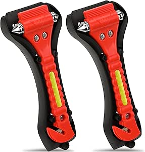 Steel Hammer IPOW 4 Pack Car Window Breaker Seatbelt Cutter, Heavy Carbon Safe Pro X Voiture 4 outils d'urgence protègent vos amis et votre famille et assurent la sécurité dans votre voiture., Contenu : 4 marteaux, Très résistant IPOW 4 Pack Car Window Breaker Seatbelt Cutter, Heavy Carbon Steel Glass Breaker Car Safety Hammer Emergency Escape Tool, Auto Rescue Life Saving Survival Kit for Car, Office, Home Libérez-vous après un accident, vous voulez agir aussi vite que possible, même blessé et sortir de votre voiture dès que vous le pouvez et appeler à l'aide. Notre outil d'urgence vous permettra de vous détacher même s'il est un peu difficile de vous libérer de la ceinture de sécurité. Libérez-vous et brisez une fenêtre latérale ou une fenêtre avant selon l'endroit où vous vous asseyez et vous échappez rapidement. Coupez facilement votre ceinture de sécurité. Libérez-vous et échappez-vous des situations dangereuses causées par des accidents de voiture. Il n'y a pas de temps à perdre lorsque vous êtes en danger et cet outil vous fera certainement gagner du temps, des blessures, des amis et de la famille. Caractéristiques : Tête pointue en acier idéale pour briser les vitres et briser le verre dans les voitures et les véhicules. Top 5 Best Car Window Glass Breakers: A Comprehensive Guide