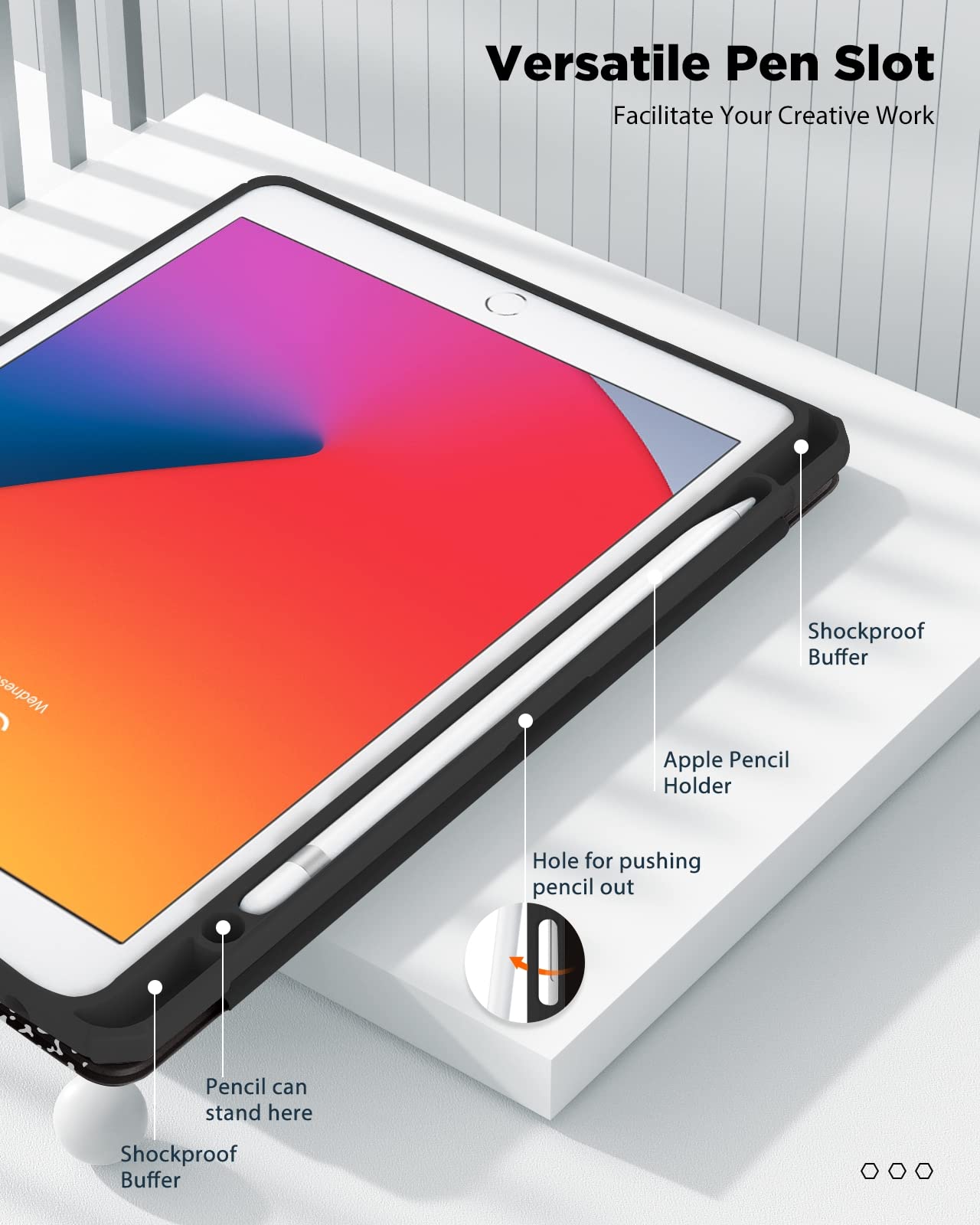 【Conception de Support Pratique】 : La conception du support à trois volets offre 2 positions de support robustes pour la visualisation et la saisie. Coque Protection Ipad 9/8/7 Génération TiMOVO Coque Pour Nouvel IPad 9ème Gén 2021, IPad 8ème Génération 2020, IPad 7ème Gén 10,2" 2019, Pivotant à 360 Degrés De Swivels Éveille/Veille Auto Retina Display Tablette - Marbre Blanc Coque Magnétique Avec Support Coque Arrière Translucide Affichez la gravure et le logo originaux pour vous montrer le vrai style. Conçu sur mesure pour votre précieux Nouvel iPad 9ème Génération 2021 (Modèle: A2602/A2603/A2604/A2605) / iPad 8ème Génération 2020 (Modèle: A2270/A2428/A2429/A2430) / iPad 7ème Génération 2019 (Modèle: A2197/A2198/A2200), ce boîtier présente une combinaison de fonctionnalités et de style 【Matériau de Qualité Supérieure】 : Cet étui pour iPad 9ème Génération est composé d'un extérieur en cuir PU durable, d'une doublure en microfibre douce et d'un dos en TPU flexible. Le dos translucide permet de voir le logo et la gravure, donne une excellente adhérence sur toutes les surfaces. Protection Complète : Cet étui pour iPad 9ème génération avec cuir PU à l'avant et PC dur à l'arrière offre une protection contre les rayures, les chocs, les chutes et les impacts. L'icône Apple est facilement visible grâce à la face arrière translucide et dépolie 【Compatibilité Parfaite】 : Spécialement conçu pour 10,2 pouces Nouvel iPad 9ème Génération 2021 (Modèle: A2602/A2603/A2604/A2605) / iPad 8ème Génération 2020 (Modèle: A2270 A2428 A2429 A2430) / iPad 7ème Génération 2019 (Modèle: A2197 A2198 A2200). Réveil/Sommeil Automatique Avec un aimant intégré, l'étui met votre iPad en veille dès que vous fermez l'étui. 【Fonction Sommeil/Réveil Auto】 : La bande magnétique intégrée réveille ou met automatiquement votre iPad 7ème Génération en sommeil lorsque le couvercle est ouvert et fermé. Coque Enfant Pour Ipad 10,2 Pouces 9Ème-8Ème-7Ème Génération, 2021-2020 Vous pouvez également ouvrir le couvercle pour réveiller instantanément votre iPad, économisant ainsi la durée de vie de la batterie. Accès facile à toutes les fonctionnalités (caméras, haut-parleur et boutons).