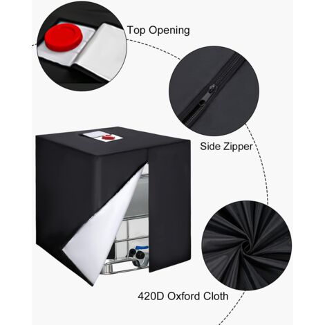 Assurez-vous de mesurer votre réservoir avant l'achat pour garantir la compatibilité. *Matériau : tissu Oxford. Protection hivernale résistante au gel : le tissu Oxford 420D robuste avec doublure en coton isolant et feuille d'aluminium protège votre réservoir IBC de 1000 L des conditions hivernales difficiles, évitant les dommages causés par le gel à la fois au réservoir et au contenu tout en maintenant une température optimale de l'eau. * Ajustement personnalisé : spécialement conçu pour les réservoirs d'eau de pluie IBC 1000L avec des dimensions de 120 x 100 x 116 cm, cette housse assure un ajustement parfait. Bâche de réservoir d'eau, Bache pour Cuve 1000 L IBC avec Couvercle rectangulaire 25x25cm, Anti Caractéristiques : * Nom du produit : housse chaude. * Installation facile : le cordon de serrage à fermeture éclair sur un côté de la housse permet une installation et un retrait sans effort. Rangement facile : idéal en combinaison avec des réservoirs IBC - Durable et résistant à la pourriture - Augmentez votre utilisation de l'eau de pluie... Matériau de qualité supérieure : extérieur en tissu Oxford de qualité supérieure combiné avec un noyau en coton isolant et un dos en aluminium réfléchissant créant une barrière thermique efficace, disponible en argent ou en noir pour compléter votre installation extérieure. Caractéristiques : * Protection hivernale : cette housse de protection IBC est conçue pour résister aux conditions hivernales difficiles, protégeant efficacement votre réservoir d'eau du gel et des dommages météorologiques extrêmes à la fois au réservoir et à son contenu. Nombre de pièces : 1 pièce. Housse IBC 1000L Isolation Bâche Pour Réservoir Ibc Housse De Protection Pour Cuve IBC 1000L - Tissu Oxford 420D Anti-UV Et étanche Housse Cuve IBC 1000L Isolation Thermique Aluminium Bache pour Cuve 1000L IBC, 420D Réservoir d'eau Couvercle,Anti-UV... Couverture résistante aux UV toutes saisons : la construction multicouche bloque les rayons UV nocifs pendant les mois de printemps et d'été, tout en offrant une isolation thermique en hiver, ce qui rend cette housse de protection adaptée pour une utilisation en extérieur toute l'année.