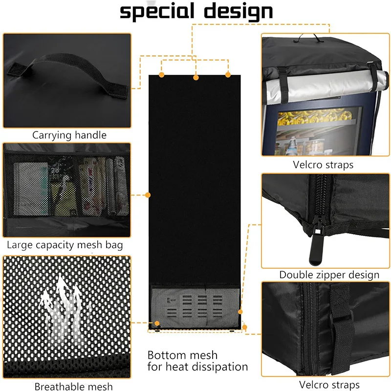 Accessibilité et circulation de l'air : la fermeture éclair intelligente permet un accès facile tout en maintenant la ventilation grâce aux grandes aérations arrière. Housse Imperméable Oxford 210d Housse De Protection Robuste Et Imperméable En Tissu Oxford 210D Housse Oxford 210D Aérations Caractéristiques : * Étanchéité améliorée : cette housse de réfrigérateur est fabriquée à partir de tissu Oxford 210D, avec une isolation imperméable pour protéger efficacement votre réfrigérateur extérieur de la pluie et de l'humidité, éviter la décoloration et les fissures au fil du temps. CYRENT Housse De Réfrigérateur Verticale Pour Extérieur En Tissu Assurez-vous de vérifier les dimensions avant l'achat pour garantir une couverture complète et une protection optimale. * Dimensions : 51 x 51 x 117 cm, 58 x 58 x 142 cm, 61 x 77 x 171 cm, 92 x 77 x 183 cm., Couleur : noir. Housse de parasol noir 265x50x70x40CM Imperméable extérieur Polyester... * Entretien facile : maintenir l'apparence de votre réfrigérateur extérieur est sans tracas avec ce couvercle ; il suffit de l'essuyer avec un chiffon humide ou de le rincer à l'eau, offrant une solution de nettoyage rapide et efficace. * Protection toutes saisons : conçue pour les éléments, cette housse offre une protection complète contre les rayures et les dommages causés par la pluie, la neige, la poussière et la saleté, assurez-vous que votre réfrigérateur reste en parfait état tout au long de l'année. Contenu de l'emballage : 1 couvercle de réfrigérateur. Veuillez vérifier les dimensions avant l'achat. * Accès pratique et ventilation : la conception bien pensée de la fermeture éclair permet un accès facile à votre réfrigérateur extérieur, tandis que les grandes aérations à l'arrière assurent une bonne circulation de l'air, gardant les aliments frais sans avoir besoin de retirer complètement la housse. Design étanche de qualité supérieure : cette housse de réfrigérateur est fabriquée à partir de tissu Oxford 210D qui dispose d'excellentes capacités d'étanchéité, protégeant votre appareil extérieur de la pluie et de l'humidité tout en se décolorant et se fissurant au fil du temps.