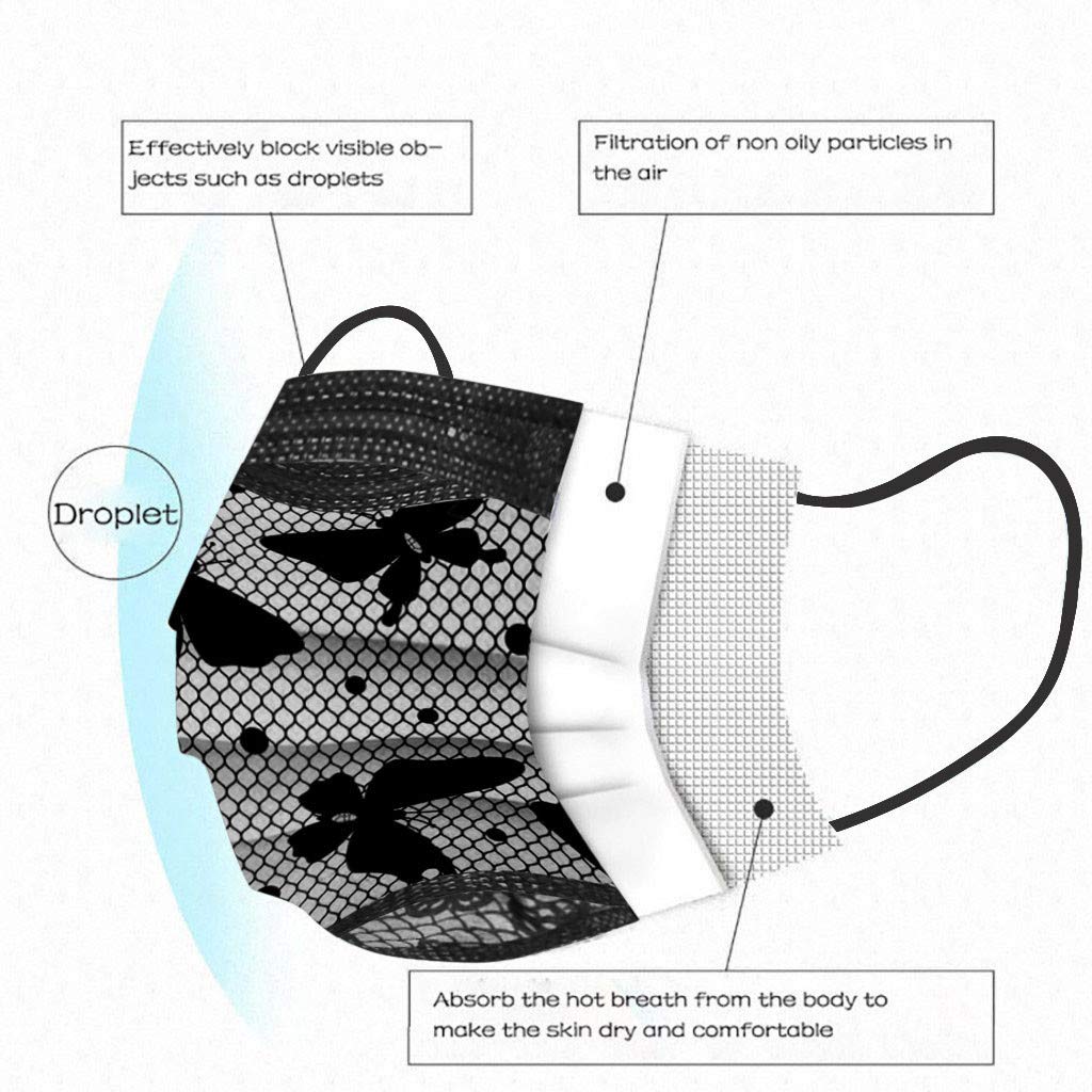 Marque : PEKLOKIW. 3,6 3,6 sur 5 étoiles (2). 50 Pièces Imprimé Floral Visage_Masque_Adulte Jetable 3 Couches Non Tissé Anti-Poussière Respirant Face Scarfs... La valve est très intéressante puisqu'elle offre plus de confort, réduit la résistance respiratoire facilitant ainsi la respiration, permet d'éviter la formation de condensation à l'intérieur du masque et la formation de buée sur les lunettes Cache Oeil Pirate PEKLOKIW 50 Pièces Imprimé En Dentelle Adulte Masque Jetable Masque Chirurgicaux Antivirus Masque buccal jetable 3 couches - 5 pièces - Masque buccal non médical