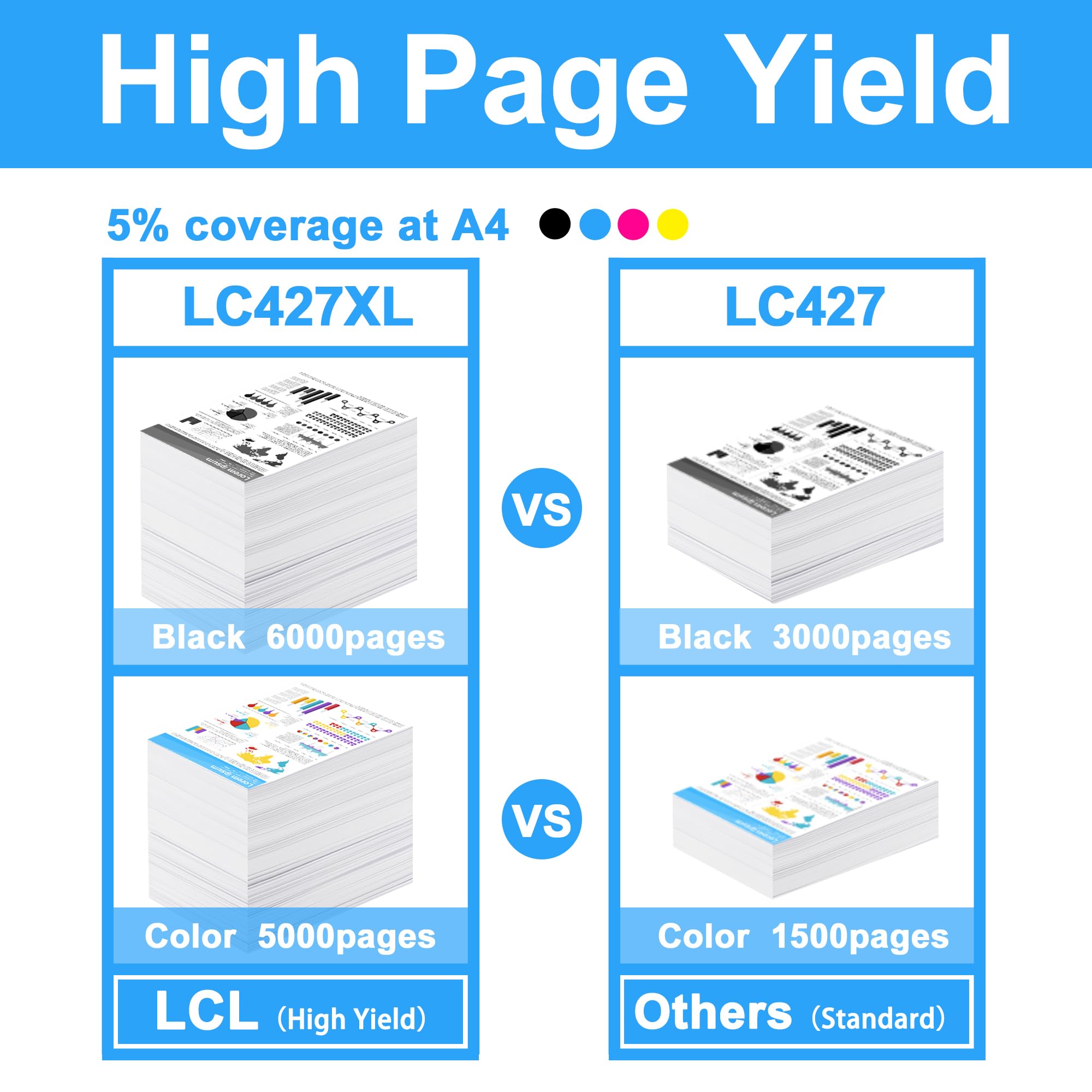 Compatibilité large, adaptée à plusieurs modèles: Cette cartouche d'encre LC426XL est compatible avec les imprimantes Brother HL-J6010DW, MFC-J5955DW, MFC-J6955DW, MFC-J6957DW, MFC-J6959DW Que ce soit le rendu précis du noir pour les documents professionnels ou la reproduction riche des couleurs pour les photos de famille, elles peuvent le faire facilement, rendant vos impressions à la fois colorées et détaillées De plus, l'encre sèche rapidement et ne se salit pas facilement. Cela vous permet d’éviter les remplacements fréquents de cartouches, réduisant ainsi les inconvénients et les coûts d’impression LC427 LC 427 Compatibile Cartouches d'encre Replacement pour Des couleurs riches pour répondre à des besoins divers: Les cartouches d'encre Meagiis LC427XL Multipack sont disponibles en quatre couleurs: Noir, Jaune, Cyan et Magenta. Le rendement en pages est 330 % plus élevé que celui de la cartouche d’encre LC427 standard. compatible ensemble 5x cartouche d'encre pour brother lc427 lc427xl hl-j6010dw mfc- ... cyan, magenta, jaune : chaque 5000 Pages A4 @ 5% (54 ml) Compatible... Emballage de cartouche d'encre robuste: Rigoureusement testé,l'emballage de la cartouche d'encre est solide et durable,offrant une résistance aux chocs et aux pressions pour garantir un transport en toute sécurité,réduire le risque de dommages et prolonger la durée de vie du produit La cartouche d’encre noire imprime jusqu’à 6 000 pages, tandis que chaque cartouche d’encre couleur imprime jusqu’à 5 000 pages. Contenu riche du colis: Notre colis comprend 2 cartouches d'encre noires, 1 cartouche d'encre jaune, 1 cartouche d'encre magenta, 1 cartouche d'encre cyan. Cartouches Couleur 5000 Pages Imprimante Laser Couleur Multifonction Brother LC-427xly-Enking Cartridge Pour MFC-J5955DW, MFC-J6955DW, MFC- J6955DW, MFC-J6957DW, HL-J6010DW, XL Cafetiere Filtre Cartouches Encre Haute Capacité LC427XL Brother Chaque cartouche imprime jusqu'à 5000 pages conformément à la norme ISO/IEC 24711. Cartouche d'encre Cyan Brother original haute capacité, offrant un haut volume d'impression et un coût à la page réduit Même en cas d'impression à grande vitesse ou d'impression continue de plusieurs pages, elle permet de maintenir des résultats d'impression excellents