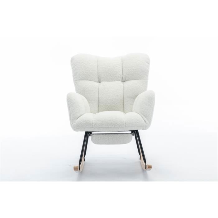 Associé à un dossier capitonné et rembourré en mousse épaisse, il procure un confort enveloppant, parfait pour se détendre, lire ou faire une pause dans le salon, la chambre ou le bureau Facile à installer, il est idéal pour se détendre et se reposer. Fauteuil A Bascule Avec Repose Pied Fauteuil à Bascule Rocking-chair Relax Avec Chaise Inclinable Et Repose Pieds Tissu Teddy Fleece Pieds Antiderapants Gris Fauteuil à Bascule Avec Repose-pieds Fauteuil à Bascule Moderne, Rocking Chair avec Dossier Haut et Cadre en... Spécifications: Composition du produit:Matériau Teddy Doux + Rembourrage en Mousse + Cadre en Bois + Base en Métal Noir Peint + Pieds à Bascule en Bois + Rembourré + Couche de Protection et d'Isolation pour le Sol, Dimensions du produit:80*98*98., 5cm(L*W*H) Ce fauteuil à bascule est fabriqué dans un tissu en peluche Teddy doux et agréable au toucher, associé à un coussin en mousse épaisse et un dossier haut, pour une expérience de confort immersive. Son design moderne et épuré s'intègre facilement dans un salon, une chambre ou un bureau. Polyvalent et Facile à Installer:Avec son design moderne et élégant, ce fauteuil s’intègre harmonieusement dans un salon, une chambre à coucher ou un petit espace de travail. Capacité de poids:110kg, Âge applicable:7 à 70 Ans Son cadre en bois massif et métal renforcé peut supporter jusqu'à 110 kg, ce qui le rend stable et durable. Fonctionnalité et Praticité au Quotidien:Un rangement latéral pratique permet de garder à portée de main livres, lunettes ou télécommande. Les poches de rangement latérales permettent de ranger facilement des livres, des lunettes et autres petits objets, tandis que le repose-pieds pliable peut être déplié ou replié à volonté. Rocking chair fauteuil : la sélection produits Leroy Merlin de ce dimanche au meilleur prix ! Retrouvez ci-après nos 278 offres, marques, références et promotions en stock prêtes à être livrées rapidement dans nos magasins les plus proches de chez vous Douceur Moelleuse et Chaleur Immédiate:Revêtu d’un tissu teddy doux et moelleux, ce fauteuil relax offre une sensation de bien-être dès le premier contact. Le repose-pieds intégré se déploie facilement pour un confort total, et se replie pour gagner de la place quand il n’est pas utilisé Les bandes de feutre sous le siège garantissent un balancement silencieux et fluide, sans endommager le sol. TDRTRD Chaise à Bascule Relax, Rocking Chair avec Poches latérales et Accoudoirs, Fauteuil à Bascule avec Repose-Pieds, Fauteuil à Bascule en Tissu avec Dossier Haut pour Maison, Salon, Beige