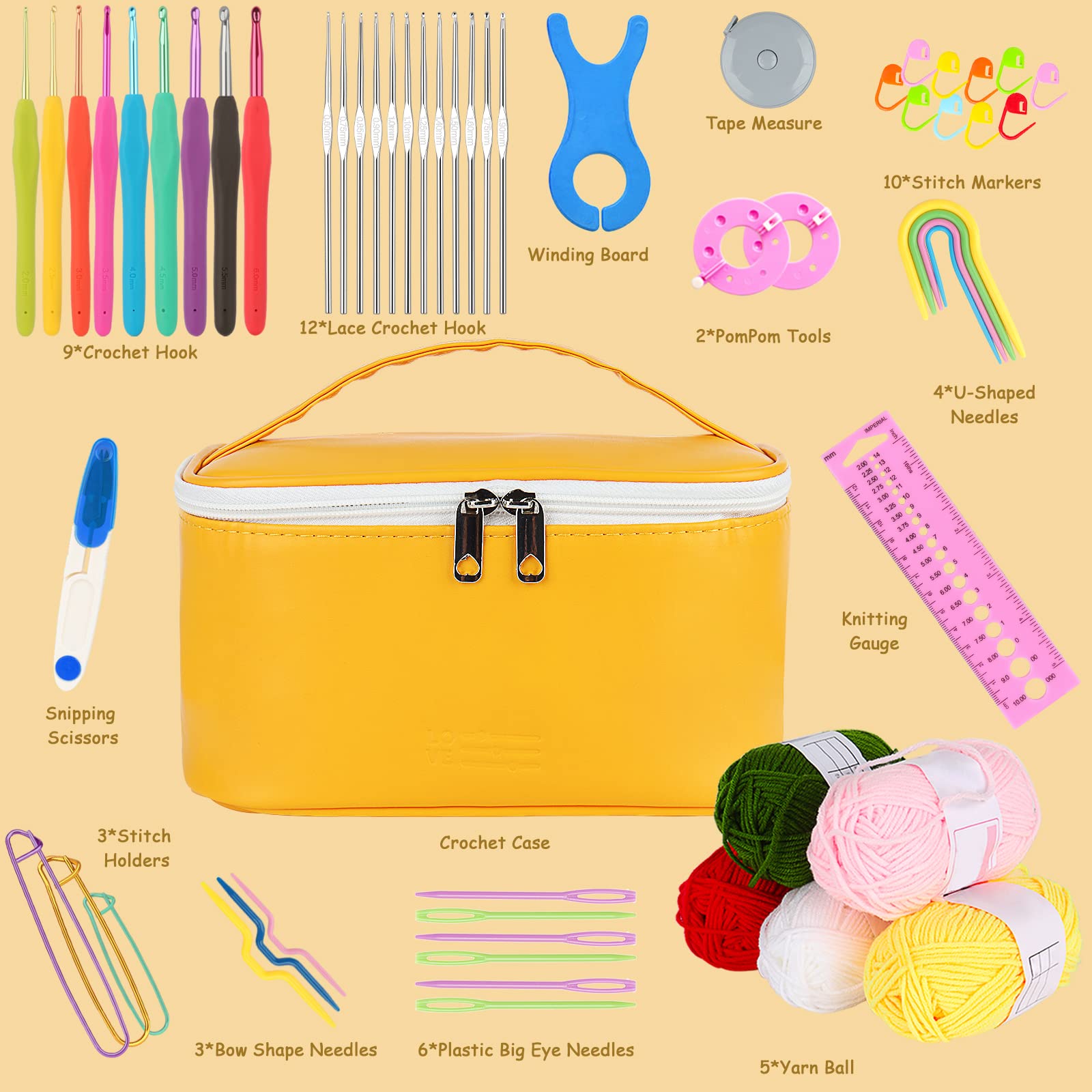 Aeeque 68pcs Kit Crochet Débutant Adulte Complet, Crochet en Dentelle 0,6-1,9mm avec 12 Pelote de Laine, 12 pcs Aiguilles à Crochet à Poignée Souple en TPR Caoutchouc 2,0-8,0mm(Sac Visible Rose Crochet Kit Debutant Beanewone Beginner Crochet Kit, Crochet Set Includes 16 Colours Of Thread And 21 Ergonomic Hooks, Standard Size, Portable Bag And Detailed Instructions, Ideal As A Gift Kit Tricot Debutant Adulte Kit de Crochet pour Débutants - Aniaux Au Crochet, Kit Coplet de... Accessoires Complets: Notre kit crochet debutant est composé d'accessoires parfaitement adaptés aux débutants, soigneusement sélectionnés pour répondre à tous vos besoins Kit De Crochet Pour Débutants : Kit De Crochet Shiba Inu, Kit De... Un Cadeau Plein D'amour: Kits de crochet est un cadeau créatif, parfait pour une occasion spéciale; détendez-vous et entrez ensemble dans le monde merveilleux du crochet 21 Crochets de Taille Standard: Crochets contenus dans ce kit crochet débutant couvrent une large gamme de tailles, de 0., 6 à 6mm, et peuvent être utilisés pour réaliser des ouvrages en dentelle raffinés ou des pulls épais; leur manche ergonomique permet de réduire au maximum la fatigue des mains