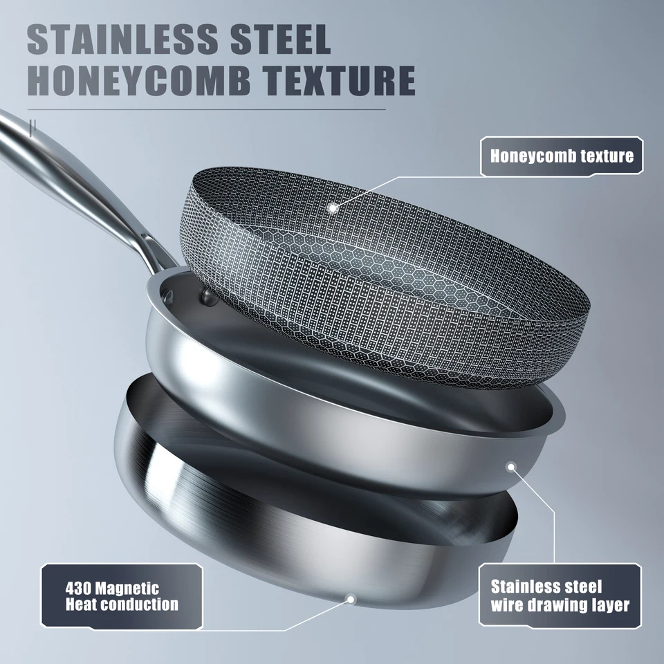 Poêle À Frire Anti-Adhésive En Cuivre Avec Poignées En Bois Contenu de l'emballage : 1 poêle à frire., Remarque : 1., La couleur réelle de l'article peut être légèrement différente de celle de la photo en raison de nombreux facteurs tels que la luminosité de votre écran et la luminosité., 2., Les mesures étant prises à la main, les tailles indiquées peuvent varier légèrement. Poêle à Frire Inox Avec Poignée Bois Navaris Poele Inox Induction - Poêle à Frire Hybride En Acier Inoxydable 22 Cm Avec Revêtement Anti-adhésif Poignée - Compatible Avec Les Plaques De Cuisson Poêle Facile à Nettoyer Sans Adhérence Matériaux : acier inoxydable, bois. Cette poêle non revêtue est idéale pour une utilisation professionnelle et compatible avec tous les types de plaques de cuisson, y compris l'induction et le gaz. La poignée est sécurisée, soudée par points et séparée thermiquement de la casserole pour une utilisation sûre et confortable Poêle à Frire SILENCE PRO - Poêle avec Revêtement Anti-adhésif, Manche... Capacité de chauffage rapide : conçue avec une couche inférieure réactive, cette poêle atteint rapidement les températures souhaitées, vous aidant à préparer vos repas plus rapidement et à économiser pendant les matins chargés ou les dîners rapides Répartition homogène de la chaleur : avec une base épaisse conçue pour une conduction thermique uniforme, cette poêle sans frire chauffe rapidement et maintient la cohérence pour éviter les points chauds et garantir une cuisson uniforme sans brûler Facile à nettoyer : la surface lisse résiste à l'accumulation de nourriture et simplifie le lavage à la main ou à l'éponge, réduisant les efforts de nettoyage et gardant la poêle comme neuve après une utilisation répétée Poignée ergonomique en bois : la poignée de la poêle est fabriquée en bois, conçue dans un esprit ergonomique pour fournir une prise en main confortable et une isolation contre la chaleur, sécurité et facilité pendant la cuisson. Poignée ergonomique en bois : la poignée en bois offre une prise en main confortable et une isolation thermique, ce qui la rend facile à manœuvrer pendant la cuisson ; sa connexion rivetée sécurisée soutient la stabilité lors de l'utilisation et ajoute un attrait de cuisine Caractéristiques : Utilisation polyvalente : cette poêle à frire en acier inoxydable est conçue pour plusieurs méthodes de cuisson, compatible avec diverses tables de cuisson, y compris l'induction, ce qui en fait un outil essentiel pour toute cuisine, que ce soit à la maison ou au restaurant.