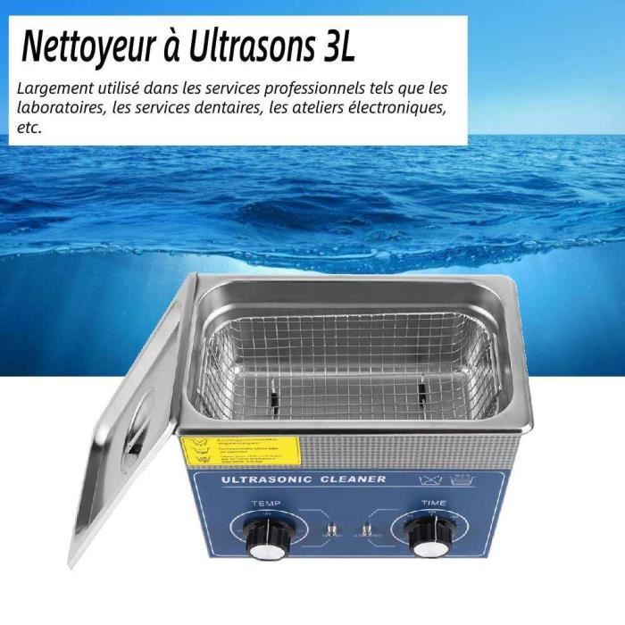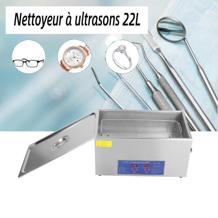 Convient à divers environnements, notamment les maisons privées, les bureaux et les laboratoires. Avec couvercle transparent pour une vue claire à 360° sur l'ensemble du processus de nettoyage. Bac Nettoyage Ultrasons Inox YOSOO Nettoyeur à Ultrasons Industriel Nettoyeur à Ultrasons Numérique En Acier Inoxydable 3L Ultrasons 47 KHz 300 Ml Il suffit d'appuyer sur le bouton après avoir sélectionné la durée du fonctionnement automatique. VEVOR Nettoyeur à Ultrasons 30L en Acier Inoxydable Bac Ultrasons Numérique avec Chauffage Temps et Température Réglables Appareil de Nettoyage Ultrasonique pour Bijoux Lunettes Montres Labo - Bricolage Description Ce nettoyeur à ultrasons rend tout comme neuf ! Fréquence 48000Hz pour un nettoyage profond des recoins. Bac acier inoxydable 304 de 350ml, puissance 24W. 2 programmes (5 et 7 minutes), arrêt automatique. Silencieux (<65dB), design compact. Parfait pour bijoux, montres, lunettes, prothèses dentaires... Plus besoin de frotter, les ultrasons font tout le travail. La solution... Des pieds antidérapants sur la face inférieure réduisent les vibrations et le bruit et garantissent un fonctionnement stable et silencieux. 【Design élégant】 Le récipient intérieur de cet appareil de nettoyage à ultrasons est fabriqué en acier inoxydable 304 résistant à la corrosion et inodore, pour un nettoyage hygiénique et une durabilité à long terme. 【Applications polyvalentes】Avec un réservoir de nettoyage intégré d'une capacité de 300 ml, il peut accueillir plusieurs objets du quotidien à la fois et nettoie sans effort les lunettes, les bijoux, les montres, les prothèses dentaires, les rasoirs, les pinceaux de maquillage, les pièces métalliques et bien plus encore. Idéal pour les objets délicats comme les lunettes, les bijoux, les prothèses dentaires et les montres. Le boîtier est fabriqué en plastique ABS écologique, particulièrement stable, résistant aux chocs et au vieillissement. 【Nettoyage en profondeur haute fréquence 47 kHz】 Les vibrations ultrasoniques haute fréquence de 47 000 Hz génèrent des millions de microbulles par seconde, pénétrant même les fissures, les rainures et les recoins les plus difficiles d'accès, pour un nettoyage complet à 360°, sans angles morts.