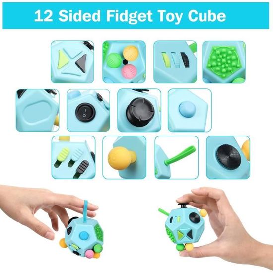 Cube Concentration Fidget Cube Infini Outil Antistress - Autisme, TSA, TDAH Balle Anti Stress Ce n'est pas un cube, ni une boule, ce Fidget Cube est un ovni, il dispose de 12 Faces. De tonalité noir et orange, il est aussi élégant qu'étrange Fidget Cube 12 Faces Bleu - Stress Zéro Cadeau Idéal : le petit cube anti stress 12 face peut être utilisé au travail, dans les transports, en classe ou pendant les pauses pour détendre votre esprit anxieux et nerveux. KAL-Fidget Cube 12 Faces - Jouet Fidget Cube Pour Adultes Et Enfants Atteints De Tdah, Tda, Autisme, Anti-Stress, Soulagement De L'Anxiété Original Infinity... Parfait comme cadeau pour les enfants, le père, la mère, la petite amie ou le petit ami Il s'agit notamment d'engrenages, de disques rotatifs, de boutons, de billes de gel, d'interrupteurs, de joysticks, de cordons, de boutons à cliquer, de massages des doigts, d'ardoises, de glissières et de figurines. Ces fonctions contribuent à soulager la tension et à améliorer la Soulage le Stress et Améliore la Concentration : Notre cube anti-stress aide à promouvoir un sentiment de calme et à réduire le stress et l'anxiété, améliorant ainsi la concentration. Conception Multifonctionnelle : Ce fidget toys cube est composé de 12 faces aux fonctions et aux côtés différents.