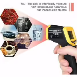 Thermomètre numérique,Yellow Color--Thermomètre haute température à infrarouge pyromètre sans Packagelist: 1 x thermomètre infrarouge 1 x sac de rangement Remarque: Pas adapté à une Thermomètre Industriel Portable Thermomètre Infrarouge -32°C à 1 250°C, Avec Mémoire | Contact DISTRAME Capteur Thermique ) Spec: Type d'article: Thermomètre infrarouge Matériel: ABS Poids: Env. Mesure avec laser pour une lecture précise. Plage de température: de -32˚C à 400˚C. Résolution 0,1˚C, précision ≈1,5˚C/≈1,5%. Rapport optique 12:1. Mode verrouillage, afin de pouvoir surveiller les températures en continue. Arrêt automatique. Livré avec pile Cikonielf thermomètre industriel Thermomètre infrarouge Thermomètre portatif contact... Mesure sûre: Ce compteur de température non tactile vous permet de mesurer les températures à distance, ce qui le rend idéal pour les zones dangereuses ou difficiles à atteindre, garantissant la sécurité sans compromettre la précision. Large gamme de températures: avec une plage de mesure étendue de -32 ° C à 400 ° C (-37 ° F à 932 ° F), ce thermomètre IR offre une lecture précise non tactile. (Remarque: N'utilisez pas le thermomètre sur l'homme ou les animaux., ) (Remarque: N'utilisez pas le thermomètre sur les humains ou les animaux. Grand écran LCD: Le thermomètre infrarouge dispose d'un grand écran LCD qui permet une lecture facile et claire des températures, ce qui le rend idéal pour la cuisine maison ou le quotidien. Gezer facilement la lecture de mesure en libérant le niveau, en vous que vous pouvez obtenir des données de température précises., 3., Grand écran LCD: Le thermomètre infrarouge dispose d'un grand écran LCD qui permet une lecture facile et claire des températures, ce qui le rend idéal pour la cuisine maison ou un usage quotidien., 4., Mesure sûre: Ce compteur de température non tactile vous permet de mesurer les températures à distance, ce qui le rend idéal pour les zones dangereuses ou difficiles à atteindre, garantissant la sécurité sans compromettre la précision., 5., Application large: il mesure la température des articles quotidiens et industriels tels que la nourriture, le verre, l'acier, etc.