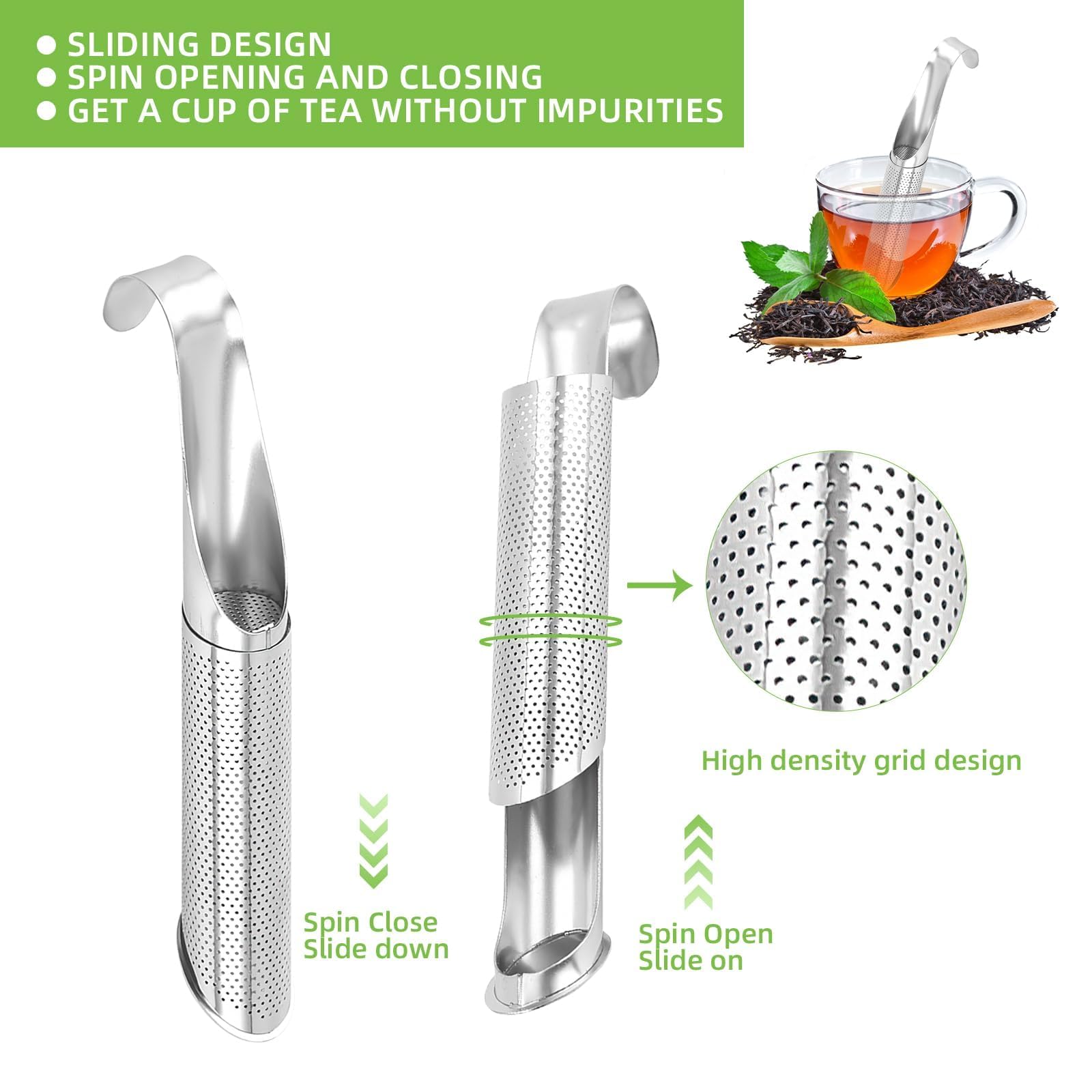 2pc Filtre à Thé Trou Fin Acier Inoxydable avec Conception Pliable,Infuseur à Th 2PCS Infuseur à Thé Original en Acier Inoxydable 304, Filtre Extra Fin... Infuseur Thé Filtre Fin Infuseur à Thé Rigolo 2Pcs Infuseur Thé, Boule À Thé Tiltre, Filtre The Pour Tasse Qualité Boule à The Originale Mug Infuseur Ce matériau présente des avantages considérables. 【Maille ultra-fine】La passoire à thé est dotée d'une excellente étanchéité grâce à sa maille ultra-fine qui empêche les feuilles de thé de fuir pendant l'infusion et est facile à ouvrir et à fermer. Yoosso 2PCS Infuseur Thé, Filtre à Thé Boule à The Filtre The pour... Non seulement il est robuste et durable, mais il offre également une excellente résistance à la rouille et conserve son état impeccable, même après un contact prolongé avec l'eau du thé. 【Facile à utiliser】L'infuseur à feuilles de thé conçu avec un crochet et une longue chaîne à attacher à votre tasse ou théière pour une récupération et un retrait faciles une fois le thé moulu. 【Large application】Cet outil d'infusion de thé offre de nombreuses possibilités. Il suffit de le rincer à l'eau courante et il est prêt pour votre prochaine infusion.