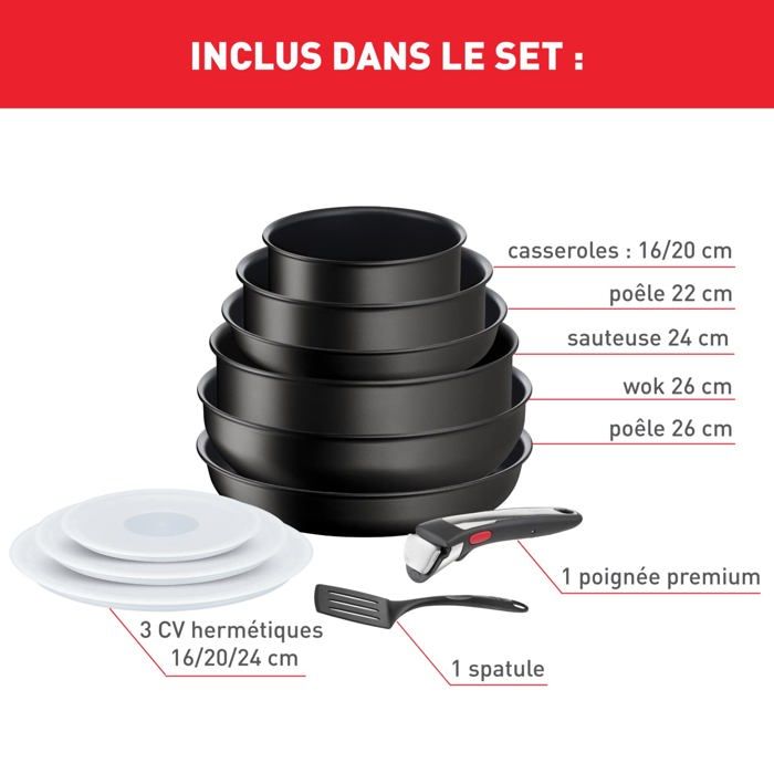 Batterie Cuisine Tefal Ingenio My Ingenio : Batterie De Cuisine Personnalisée Batterie De Cuisine Professionnelle Empilable Ingenio Eco Resist, Antiadhésif, Batterie de cuisine 13 pièces, Induction | BATTERIES DE CUISINE A MANCHES AMOVIBLES Promo Batterie De Cuisine 5 Pièces Ingenio émotion G6 Tefal chez Géant... L'ensemble dispose de tailles graduées pour répondre à différents besoins de cuisson, des petites préparations de sauce aux repas familiaux plus grands. Ces poêles polyvalentes sont adaptées à toutes les surfaces de cuisson et passent au lave-vaisselle pour un nettoyage facile. Ensemble professionnel : lot de 5 casseroles en acier inoxydable de tailles graduées, parfait pour une utilisation domestique et professionnelle Chaque casserole est habilement conçue avec une construction en acier inoxydable de qualité supérieure, offrant une meilleure répartition de la chaleur et une durabilité supérieures. Construction durable : la construction en acier inoxydable de haute qualité assure une excellente répartition de la chaleur et une performance durable Cuisson polyvalente : idéal pour diverses méthodes de cuisson, y compris l'ébullition, le mijotage et la fabrication de sauce sur tous les types de plaques de cuisson Tailles pratiques : le lot comprend plusieurs tailles de casseroles allant d'environ 14 cm à 22 cm de diamètre pour différents besoins de cuisson Batterie De Cuisine 20 pièces à poignée amovible inox anti-adhésif - Poêle et Casseroles antiadhésif - Ingenio Emotion L897SK04Découvrez le Set Tefal Ingenio Emotion 20 pièces, la solution idéale pour une cuisine moderne, pratique et élégante. Conçu en acier inoxydable de haute qualité, ce set offre une excellente durabilité, une diffusion optimale de la chaleur et un revêtement...