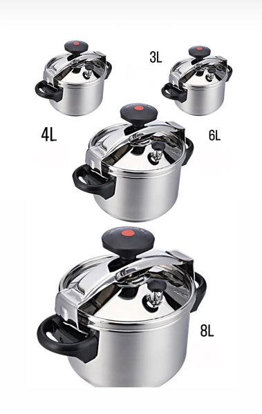 Bouilloire Sifflante en Acier Inoxydable pour Plaque de Cuisson - 1,75 L'autocuiseur Magefesa Practika Plus atteint rapidement des températures élevées, cuisant les repas jusqu'à 70 % plus rapidement que les méthodes... Autocuiseur Inox Pression Rapide Autocuiseur En Acier Inoxydable 8 L - Cuisson Rapide Et économe En Autocuiseur Induction 5L This portable pressure cooker, made of stainless steel, delivers efficient and fast cooking results. Specifications: Product Name: Pressure Cooker Material: 304 Stainless Steel Product Size: 3., 5L: 24×11., 5cm | 9., 45×4., 53in 5L: 26×13cm | 10., 24×5., 12inPacking List Portable Pressure Cooker*1 Note: Due to the different light and screen settings, the color of the goods may be slightly different from the picture. Magefesa Inoxtar - Autocuiseur Traditionnel 10L, Acier Inoxydable 18/10, Induction, Cuisson Saine, Bouton Rotatif, Fond Thermo-Diffuseur 5 Couches · 4,14,1... A true multifunctional kitchen accessory, it handles stews, meats, beans, soups, and steaks with ease. Safety First Design: Featuring a double release system and auto pressure balance, this portable pressure cooker ensures no overflow risk while providing good safety assurance during use, enhancing peace of mind for every cooking session Streamlined Cooking Process: Featuring micro-pressure technology, this portable pressure cooker delivers uniform heat distribution, enabling 30-minute meals while optimizing time-saving cooking efficiency without compromising on quality or taste Convenient Use: Equipped with an ergonomic safety design, featuring a slip-resistant grip and heat-insulated handle, for confident handling while using the portable pressure cooker, ensuring user comfort and protection against heat exposure during use