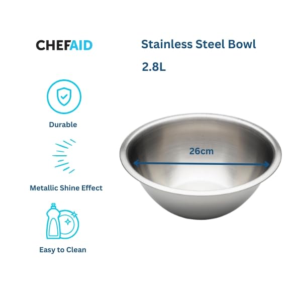 Bol Acier Bol à Mélanger Chef Aid Acier Inoxydable 3,8L - 30cm Sa finition brillante et élégante ajoute une touche de sophistication à votre cuisine, tout en étant extrêmement facile à nettoyer. Acier Inoxydable S à Mélanger En Avec Couvercles, Set De 5 (1.45L, 1 Bol Inox Fabriqué en acier inoxydable de premier choix, ce bol ne retient ni les odeurs ni les goûts, garantissant ainsi que vos préparations restent pures et savoureuses. Conception de couvercle sécurisé] 5 couvercles hermétiques préservent la fraîcheur et empêchent la détérioration des aliments dans cet ensemble de bols à mélanger en acier inoxydable Ce bol en acier inoxydable KitchenAid est conçu pour s'adapter à nos robots pâtissiers à tête inclinable de 4,3 L, 4,7 L et 4,8 L. D'une capacité de 4,8 L, ce... C'est l'ajout indispensable à votre collection Il est également compatible avec le réfrigérateur et le lavevaisselle, ce qui le rend parfait pour une utilisation quotidienne. COMPATIBLE LAVEVAISSELLE : Fabriqué en acier inoxydable de haute qualité alimentaire, cet article peut être nettoyé en toute sécurité dans le lavevaisselle Que vous prépariez une salade, mélangiez des ingrédients pour une pâtisserie ou serviez un repas, notre bol est le choix parfait pour toutes vos activités de cuisine. Investissez dans la qualité et la fonctionnalité avec notre bol en acier inoxydable. Bol en Acier Inoxydable Découvrez la perfection et la durabilité avec notre bol en acier inoxydable de haute qualité.