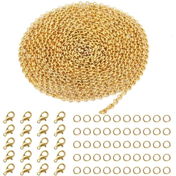 Fermoirs Magnétiques et Chaîne d'Extension Fermoirs de Homard Rallonge Kit Fabrication Bijoux DIY Kurtzy Chaine Acier Inoxydable Fabrication Bijoux En Mailles Dorées 9m Chaîne Argentée NBEADS 20 Brins 45c Chaînes en Acier Inoxydable 304, 1.5 ince... Chaine Acier Inoxydable Chaine pour Bijoux avec 20 Fermoirs à Homard Fermoirs pour Bijoux et 40 Anneaux de Saut Chaine Collier Fabrication Bijoux Chaine Argent Fermoir Collier 1., 5mm Spécification: Couleur: Argent Matériau: acier inoxydable Taille: Chaîne environ 9mx1., 5mm Fermoir mousqueton: 12x6mm Anneau de saut: 5mm Quantité: 61 pièces Contenu de l'emballage: 1 x chaîne 20 x Fermoirs mousqueton 40 x Anneaux à sauter Remarque: 1., En raison de la mesure manuelle, veuillez permettre un léger écart de mesure., 2., En raison de l'influence de la lumière, la couleur du produit réel peut être légèrement différente de l'image, veuillez vous référer au produit réel., 3., Si vous avez des doutes ou une insatisfaction concernant le produit, veuillez nous contacter et faire de notre mieux pour le résoudre pour vous. 130pcs Inoxydable Fermoirs à Homard kit, 65pcsAnneaux de Saut en Acier... Fabriqué en acier inoxydable de haute qualité, durable, pas facile à endommager. Le forfait comprend un rouleau de chaîne argentée, 20 fermoirs à homard avec 40 anneaux de saut.