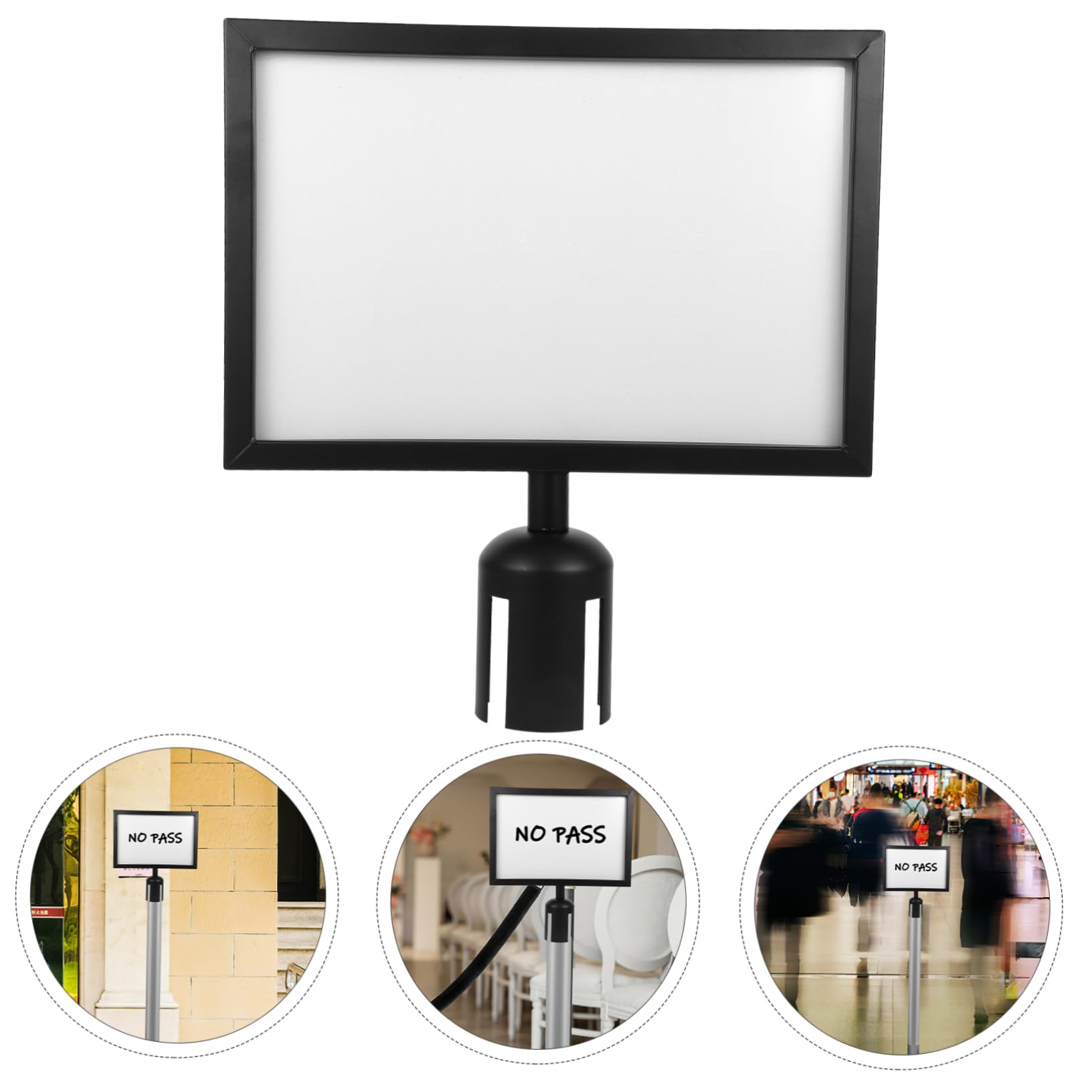 Support de panneau : fabriqué en acier inoxydable de bonne qualité et robuste, et robuste à utiliser, support de panneau supérieur de poteau commercial Support Panneau Acier Inoxydable Poteau File Attente Support Horizontal En Acier Inoxydable Pour Poteaux De Ligne Support Robuste Multifonction - Conception raisonnable, structure simple, solide et pas facile à déformer ou à rouiller, vous pouvez utiliser le support de panneau de poteau en toute confiance. Porte-affiches pour poteaux à sangle et barrières rétractables. Affichez des messages de sécurité ou des promotions avec des cadres d'affiches durables A3/A4 de Flexibarrier et Beltrac. Idéal pour les files d'attente et les espaces publics Présentoir de panneau d'affichage de comptoir Il n'est pas facile de se déformer et vous apporte beaucoup de commodité Support de panneau commercial : fabrication soignée, conception délicate et simple, pratique et pratique, adapté au poteau, à la barrière de sécurité, au poteau de file d'attente, à la barrière de contrôle des foules, à la ceinture rétractable, au support de panneau de poteau Idéal pour informer ou orienter vos convives ou clients sur votre espace de vente ou d'accueil, le porte-affiche peut s'installer rapidement sur n'importe quel poteau de guidage. Le porte-affiche, prévu pour des affiches format A4, dispose d'un cadre et d'une structure en acier chromé et inoxydable. Un feuillet transparent protège l'affiche, ce qui vous permet d'utiliser le porte-affiche... Porte-panneau pour aéroport C'est parce que notre produit peut répondre à vos besoins. - Polyvalent et utile, adapté à diverses occasions, aéroports, , expositions, supports d'affiches de lieux publics. Support de panneau d'affichage : il est produit par un bon savoir-faire et possède une structure solide, peut l'utiliser en toute , support de panneau pour barrières de sécurité VEVOR Poteau de Guidage 6PCs 93 cm Barrière de Balisage pour Contrôle Porte-panneau de barrière de file d'attente Adopté en acier inoxydable, il est pratique et pour une utilisation à long terme. Support de signalisation au sol : fabrication soignée, design simple et délicat, pratique et pratique à utiliser, adapté à la ceinture rétractable, à la barrière de sécurité, au poteau de file d'attente, à la barrière de contrôle des foules, au support de signalisation