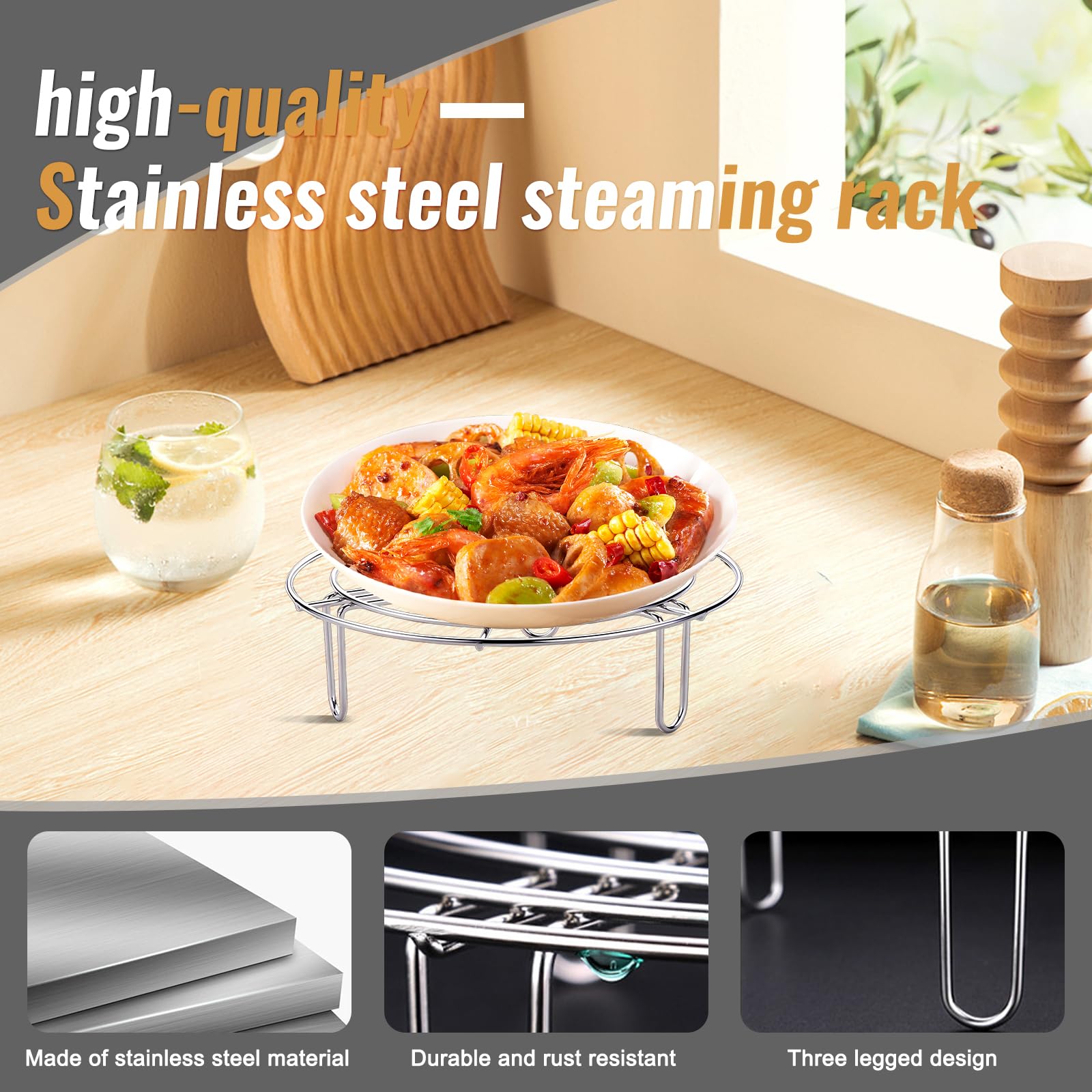Casserole Grille D'insertion En Acier Inoxydable - Support De Cuisson à La Vapeur - Grille à Gâteau Ronde - Insert Vapeur Pour Casseroles, Casseroles, Grilles De Refroidissement (27,5 X 5,5 Cm Accessoire Cuisson Vapeur Grille à vapeur pour micro-ondes, grille en acier inoxydable, ustensile Grille de mise en conserve, grille de bocal de mise en conserve, grille... Idéal pour cuire à la vapeur des légumes, du poisson ou des boulettes dans des cuiseurs à riz/casseroles standard. Avec une capacité généreuse, répartition uniforme de la chaleur grâce à des barres de rouille symétriques et des pieds stables à trois pieds. Capacité de vapeur généreuse : avec un diamètre de 20 cm et un bord surélevé, il peut contenir plusieurs portions en même temps - parfait pour les repas en famille et la cuisson rapide Insert vapeur en acier inoxydable (diamètre : 20 cm) en matériau de qualité alimentaire, inoxydable et résistant à la chaleur. Bien conçues : grilles rondes avec barres symétriques pour une répartition uniforme de la chaleur et un arôme complet. Le design stable à trois pieds avec pieds antidérapants garantit un maintien sûr sur toutes les surfaces Facile à utiliser : cet insert de cuiseur vapeur convainc par sa surface lisse, son nettoyage facile et sa durabilité robuste Cuiseur vapeur,Grille rétractable à vapeur chinoise en acier inoxydable...