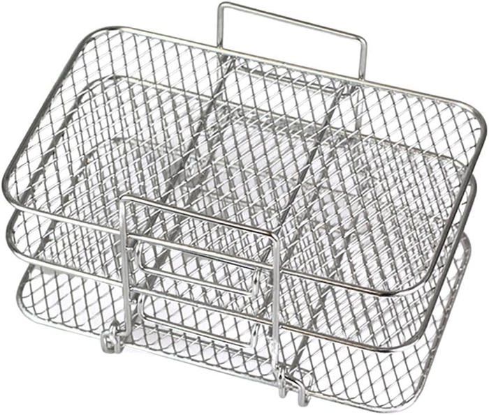 Grille Brochettes Air Fryer Support De Poulet En Acier Inoxydable, Support Vertical En Acier Pour Support Vertical Cuisson Brochette Grille de déshydratation, grille à pain Air Fryer en acier inoxydable SUPPORT VERTICAL POUR brochettes de kebab, support pour pique-nique... Une addition fiable à toute cuisine, il facilite la création de plats délicieux comme auparavant. Caractéristiques:Nom du produit: Rack de brochette à friteMatériau produit: acier inoxydableTaille du produit: environ 16x10cm / 6,3x3,94 poucesPoids du produit: environ 144gListe des produits:1 * Rack de brocheur à frite24 * brocheur kabobsNote:En raison de différents paramètres d'éclairage et d'écran, la couleur de l'élément peut être légèrement différente de l'image. En raison de différentes mesures manuelles, veuillez permettre une différence de taille de 1 à 2 cm. Préparez vos aliments efficacement sans sacrifier le goût ou la qualité. Matériau durable : Rack en acier inoxydable résistant conçu pour supporter les hautes températures sans déformation, garantissant une cuisson uniforme et sécurisée dans votre airfryer et au gril Fonctionnalité : Son système de suspension maintient fermement plusieurs brochettes pour une chauffe homogène à 360., Cette conception améliore significativement l'efficacité de cuisson au gril à air tout en offrant des résultats complets et constants. Rangement facile : Conçu avec une structure amovible et pliable, ce support à brochettes n'occupe pas d'espace supplémentaire dans la cuisine. Dimensions de la grille de cuisson Airfryer : 16 x 16 x 10,5 cm, panier rond pour airfryer, il convient à de nombreuses friteuses à air courantes. La grille d'airfryer verticale offre de la place pour 12 brochettes, répond aux dîners de plusieurs personnes ou aux fêtes de famille