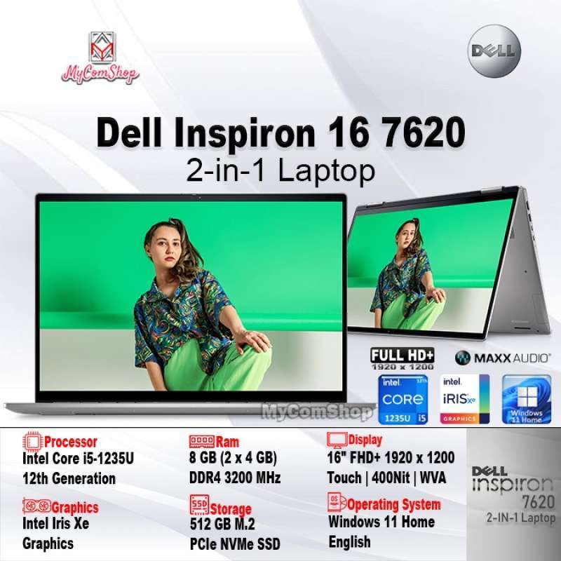 Avec Windows 11 Home préinstallé, cet ordinateur portable vous offre une interface utilisateur conviviale et des fonctionnalités avancées pour une expérience informatique améliorée. L'Inspiron 16 2 en 1 7620 est conçu pour être polyvalent, que vous soyez un étudiant, un professionnel ou un utilisateur quotidien. Processeur Intel Core i5-1235U 16 Full HD 8Go DDR4 512 Go SSD Intel ADL-P P28/U15 UMA Iris Windows 11 Core L'ordinateur portable Dell Inspiron 16 2 en 1 7620 est équipé de la carte graphique Intel ADL-P P28/U15 UMA Iris Graphics, offrant des performances graphiques exceptionnelles pour vos besoins multimédias et créatifs. Refurbished Dell Inspiron 16 Plus 7620 Laptop, Green, Intel i5, 16GB Le clavier AZERTY français rétroéclairé ajoute une touche d'élégance et facilite la saisie, même dans des environnements faiblement éclairés. Avec la fonctionnalité tactile, vous pouvez interagir de manière intuitive avec votre appareil. Dell Inspiron 16 Plus 7620 Laptop, Intel Core i7 Processor, 32GB RAM... Windows 11 Home - Nouveau design magnifique et plus cohérent, fonctionnalités de performances améliorées, nouvelle sélection et capacités de jeux vidéo, compatible avec les applications Android Découvrez le Dell Inspiron 16 2 en 1 7620, un ordinateur portable polyvalent conçu pour répondre à tous vos besoins informatiques. Profitez d'une fiabilité exceptionnelle, de performances puissantes et d'un design élégant avec le Dell Inspiron 16 2 en 1 7620., Cet ordinateur portable répondra à tous vos besoins informatiques avec style et efficacité. Ordinateur Convertible écran 16 Pouces Tactile Dell Inspiron 16 5630 Ordinateur Portable, Processeur Intel Core I5 Dell Inspiron I5 1235u Powerful Dell Inspiron 16 Plus 7620 with Core i7-12700H CPU, RTX 3050... Combinez le meilleur des deux mondes avec un gigantesque écran au format d’image 16:10 dans un ordinateur 2-en-1 fin