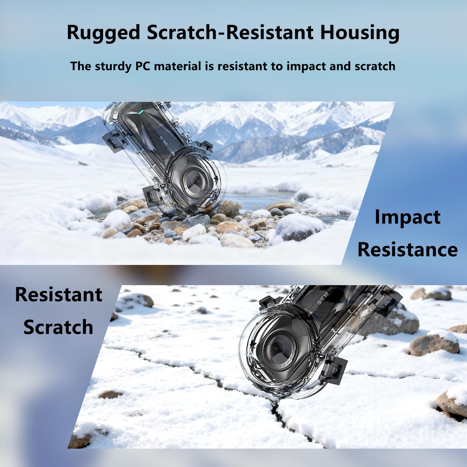 étui Camera Sport Nautique Étui De Plongée Invisible Pour Insta 360 X5, Coque De Protection De Plongée Sous-marine Pour Insta 360 X5, Coque De Protection étanche Pour Caméra De étui Plongée 60m Caméra 360 JoyMaySun 1 set Adulte Complet Visage Anti-Buée & Étanche Plongée YOSOO Étui de plongée avec appareil photo Boîtier de plongée étanche... Boîtier Étanche Transparent Et Durable Compatible avec Insta360 Affichage Détaillé Du Boîtier Étanche ✅ Conception invisible à 360° pour des coutures sans couture - compatible avec Insta360 X5, garantissant l'absence d'obstruction dans les prises de vue tout en maintenant un assemblage parfait sous l'eau Affichage Panoramique à 360 Degrés ✅ Objectif ultra-clair 95 % PMMA avec traitement anti-buée - L'objectif avec traitement anti-buée à haute transmission empêche la formation de buée, les rayures et les reflets, pour des images à 360° d'une clarté cristalline sous l'eau. ✅ Coque PC robuste et antichoc - Le matériau PC renforcé et durci avec texture anti-rayures protège contre les chutes, le sable et les impacts dans les environnements difficiles. ✅ Monture à dégagement rapide et compatibilité universelle - Comprend un filetage de trépied 1/4 et un adaptateur à dégagement rapide pour les bâtons de selfie, les lumières et autres accessoires. JoyMaySun 1 set Adulte Complet Visage Anti-Buée & Étanche Plongée...
