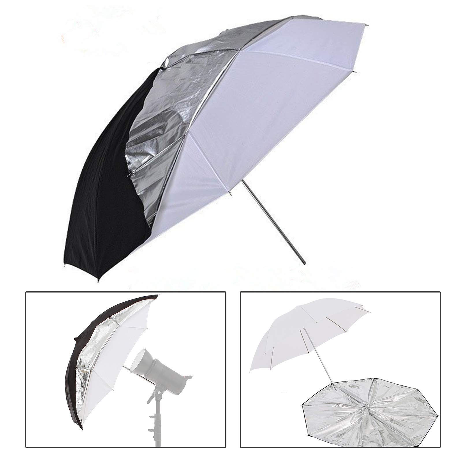 Mini parapluie publicitaire, en nylon, argenté à l'exterieur et coloré à l'interieur - Ref Accessoire Studio Photo Parapluie Noir Intérieur Bleu - Mât En Bois - Produit Français - Dess Parapluie Réflecteur Diamètre optimal:Diamètre de 108CM verser une répartition homogène de la lumière dans le studio. Reflecteur noir léger:Pèse seulement 0,28KG, facile à manipuler... Kit de 2 homeliers argentés adaptés pour une excellente diffusion de la lumière ou réflexion par flash de chaque type réduit considérablement les ombres et les annule presque complètement si utilisés avec lumière réfléchie diamètre 84 cm. Le parapluie réflecteur a un diamètre de 84 cm et une envergure de 98 cm. Il est pliable comme un parapluie et convient à tout appareil de studio. Un parapluie... Kit de 2 homeliers adaptés pour une excellente diffusion de la lumière ou réflexion pour flash de tout type Longueur fermée : 59 cm., Diamètre : 84 cm.