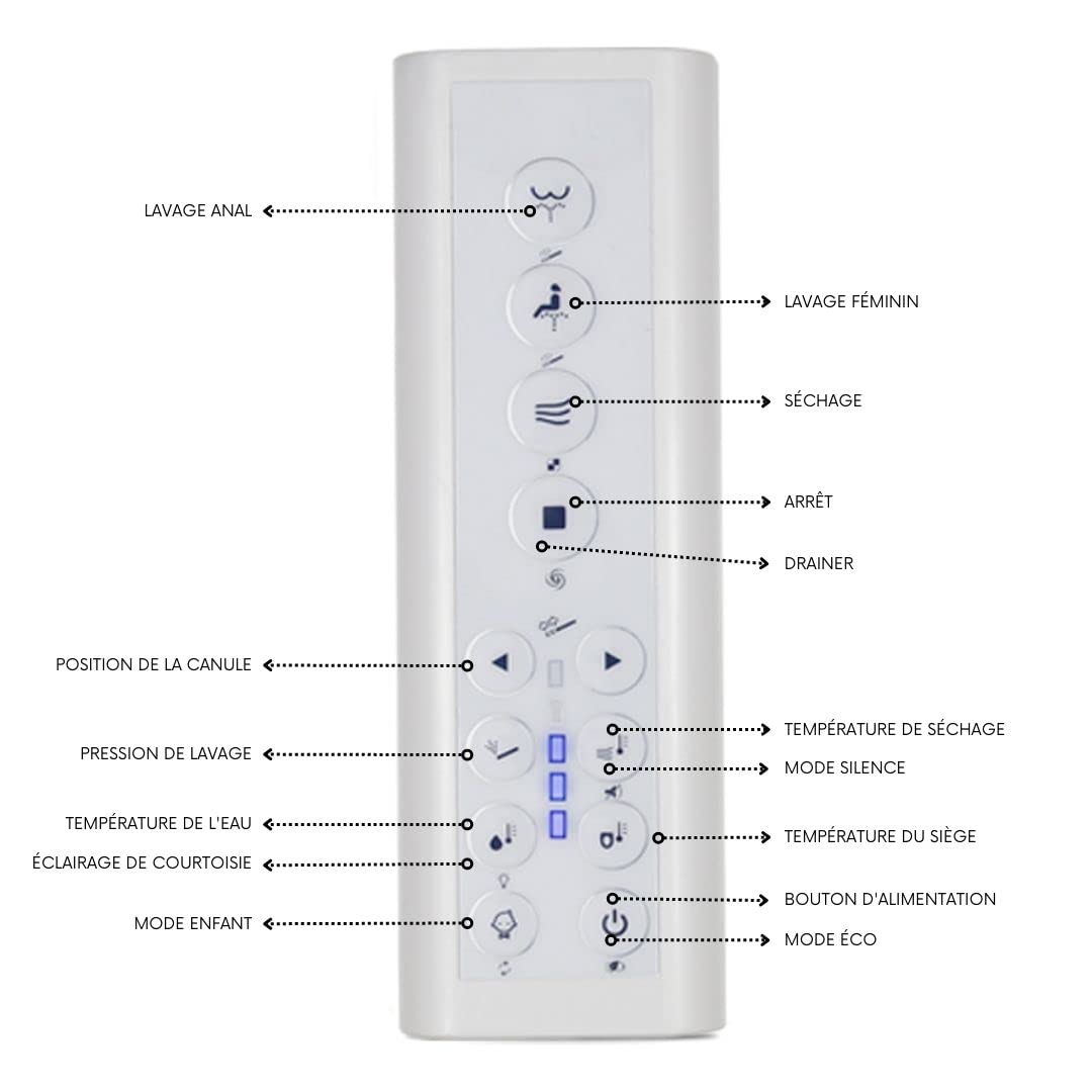 Toilettes japonaises suspendues. Le siège et le couvercle se retirent facilement. Cette fonction de décharge automatique crée une expérience mains libres très confortable. Un jet à pression génère un tourbillon d'eau pour évacuer efficacement, propre et écologique. L'air pour le séchage dispose de 4 niveaux de température. Le jet d'eau, chauffé instantanément, dispose de 4 niveaux de pression et 4 niveaux de température. Toilette Japonaise Chauffante Nashi - Toilette Japonaise Intelligente | WC Avec Bidet | Jet D'eau Wc Japonais Auto Nettoyant Isvea WC Suspendido Con Inodoro Función De Bidé Integrado Rimless Color Verde Petroleo Con Asiento Softclose 93626507 Auto-stérilisation de votre injecteur en titane (propriété bactériostatique) ainsi que de son filtre à eau intégré. Minimaliste et sans réservoir, vous n'en avez pas besoin, elle se substitue à un système innovant « cyclonique ». En outre, il dispose d'une veilleuse blanche qui peut être allumée ou éteinte. Bidet Abattant Wc Avec Bidet Douche-Wc V-O-D Forme Pour Toilettes... Et votre télécommande peut être placée à proximité, elle est fixée magnétiquement à son support. Siège chauffant et déodorant intégré : avec cette toilette tout-en-un, vous n'aurez plus à craindre la tasse froide en hiver ; à partir de maintenant, vous serez toujours chauffé, avec 4 niveaux de température au choix et un capteur d'occupation. Matériaux résistants et de qualité : ce WC japonais avec chasse d'eau encastrée (Roca duplo WC One) est fabriqué en céramique antibactérienne et ABS de haute qualité et haute résistance. Ce WC intelligent, doté de fonctionnalités telles que le bidet intégré, le déchargement automatique et le siège chauffant, transforme lu2019expérience de la... L'injecteur dispose de 3 positions et effectue un agréable mouvement oscillant de nettoyage avec fonction massage. En outre, il intègre également un déodorant au charbon de bambou qui élimine les odeurs et maintient la fraîcheur de la salle de bain. Le panneau fixe n'est pas visible et ne se tache pas par les éclaboussures typiques.