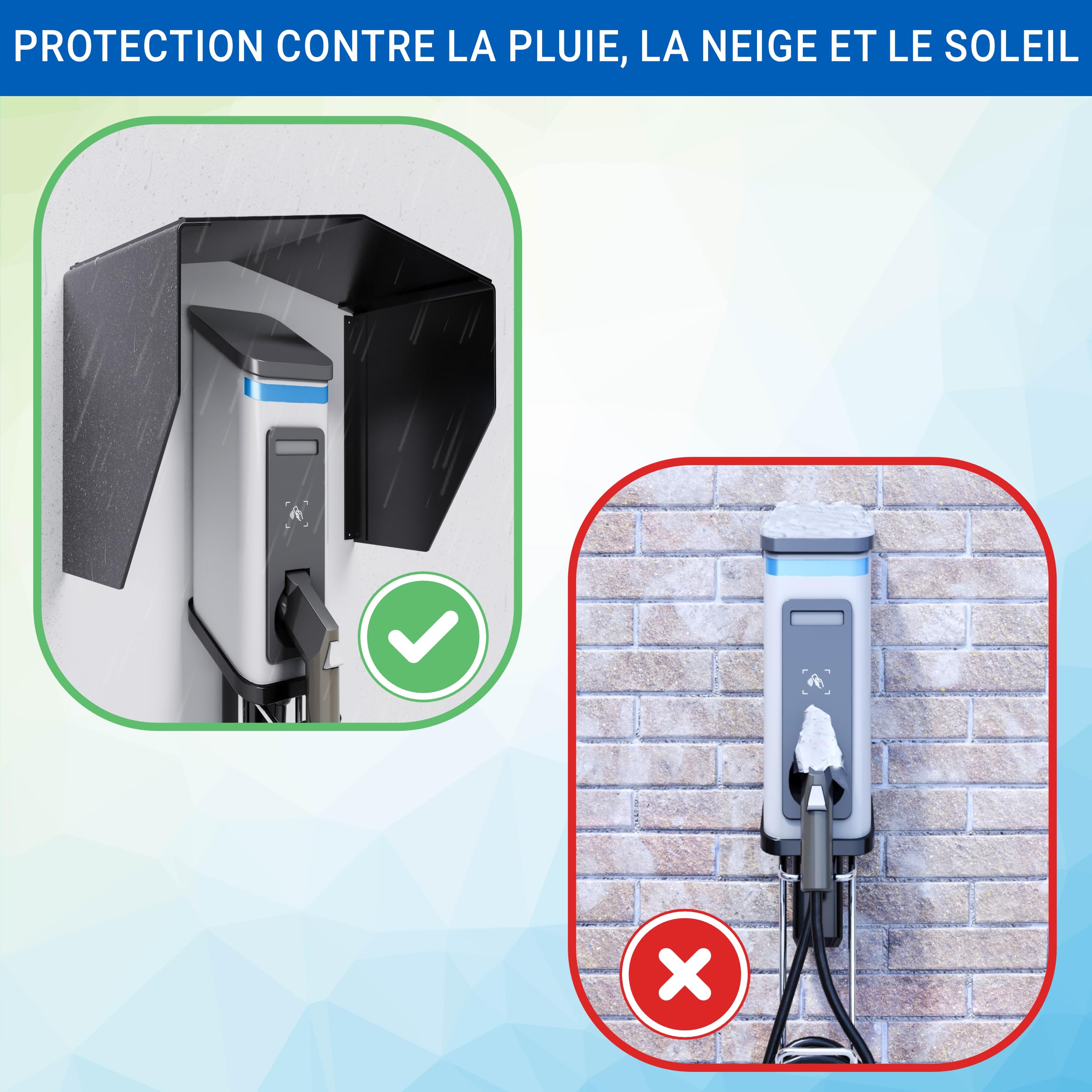 Remarque sur les tailles : n'oubliez pas de mesurer votre boîte murale spécifique avant de commander pour assurer la compatibilité avec cette housse de protection. Accessoire Recharge Extérieur Installation Murale Incluse Kärcher Cabine De Protection Contre Les Intempéries - D'usine | Kärcher Center Maes Housse Intempéries Pour Chargeur VE Caractéristiques : * Parfait pour presque toutes les stations de charge standard, il suffit de mesurer votre boîte murale et de choisir la bonne taille, les dimensions intérieures de la housse de protection sont d'environ : longueur 27,9 cm x largeur 43,9 cm x hauteur 27,9 cm. 1-48 sur plus de 9 000 résultats pour protection borne de recharge Résultats En apprendre plus sur ces résultats. Consultez la page de chaque produit pour connaître les autres options d'achat Contenu de l'emballage : Kit de protection pour pile de charge. [Couverture complète de la station de charge] Ce kit de protection est conçu spécifiquement pour les stations de charge des véhicules électriques, avec un toit résistant aux intempéries qui protège contre la pluie, la neige et la lumière du soleil intense. Wallbox Cover, la couverture pour les stations de charge pour voitures électriques et wallbox de Box Air Klima offre une solution idéale pour protéger votre station de charge pour voiture électrique ou wallbox et l'onduleur solaire contre les intempéries, la poussière et les dommages accidentels.L'installation de la couverture est simple et rapide. Elle est fournie avec des instructions... *Matériau : alliage d'acier. Le vernis est très facile à nettoyer et enveloppe votre boîte murale dans un look intemporel et élégant. Conçue pour les tailles standard : les dimensions d'environ 27,9 cm de long, 7,6 cm de largeur et 27,9 cm de hauteur rendent cette coque adaptée à la plupart des stations de charge standard. Housse de protection contre la grêle pour Suzuki Swift 2017-2024, ajustement personnalisé Il assure un fonctionnement sûr pendant la charge, gardant votre précieux boîtier mural en toute sécurité. Matériel d'installation inclus : équipé de tous les accessoires de montage nécessaires, y compris des vis pour l'installation murale et l'assemblage du couvercle lui-même pour une installation rapide.