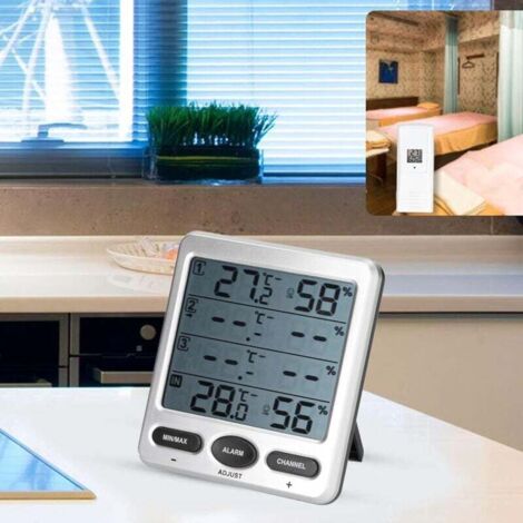 Thrmomètr hygromètr digital intériur - Noir - Otio au millur prix La conception rectiligne et géométrique du dispositif s'adapte à l'atmosphère d'une décoration moderne et minimaliste. Mesure Température Humidité Intérieure Thermomètre Hygrometre Interieur, 2pc Hygromètre Numérique Mini Digital à Haute Précisio Hygromètre Numérique Thermomètre Ce dispositif vous aidera à les maintenir toujours sous contrôle. La plage de mesure de l'humidité est comprise entre 10 % et 99 %. Les mesures sont automatiquement mises à jour toutes les 10 secondes grâce aux capteurs... EUROXANTY Thermomètre-Hygromètre analogique d'intérieur | Mesureur d'Humidité relative et Température sans Piles | Hygromètre à Accrocher ou Appuyer pour Salles... THERMOMÈTRE — Sur une simple pression de touche, notre dispositif montre la température avec un haut niveau de précision en degrés Celsius et Fahrenheit. 1 Thermomètre 2 Fonction mémoire 3 Format 12 ou 24 h HYGROMÈTRE — L’apparat mesure l’humidité relative de l’ambiance et sauvegarde des valeurs minimaux et maximaux pour les consulter ultérieurement. Les changements dans la température et l'humidité de l'ambiance ont un effet sur notre santé. ASPECTS CLÉS — Dispositif hygromètre, thermomètre et horloge avec écran LCD., Alimentation : 1 pile AAA., Carcasse en ABS. Description du produit Confort à la maison