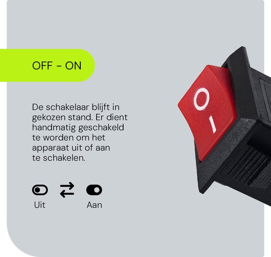 L’inscription claire « O I » permet une lecture intuitive. Son encoche anti-rotation garantit une bonne tenue. Matériaux fiables et résistants: Conçu en nylon PA66 de qualité, cet interrupteur 12v KCD1 résiste à la chaleur, à l’humidité et aux agents chimiques. Le marquage « ON/OFF » clair sur chaque interrupteur garantit une utilisation intuitive. Mini Interrupteur À Bascule Proride On/off Kcd1-10 - 2 Ce pack pratique vous offre suffisamment d’éléments pour divers projets de réparation, remplacement ou création de circuits Facile à utiliser : L'installation de ces interrupteurs à bascule est extrêmement simple grâce à leur conception à montage sur panneau. Lot de 10 mini interrupteurs à bascule T85 2 broches SPST ON/OFF - Interrupteur à bascule ON/OFF KCD1 - 6 A / 250 V 10 A / 125 V - Pour voiture, bateau... Les interrupteurs à bascule sont parfaits pour les voitures, motos, bateaux, camping-cars et autres véhicules ainsi que pour les projets électroniques de bricolage Spécifications : Dimensions : 15 x 21 mm Matériau : Nylon PA66 et cuivre Type : ON/OFF (SPST) Tension nominale : 250 V CA, 6 A 125 V CA, 10 A Type de contact : SPST, 2 broches Couleur : Noir Contenu : 10 interrupteurs à bascule avec câblage Remarque : Veuillez couper l'alimentation avant l'installation. Le branchement se fait simplement : une borne pour l’alimentation, l’autre pour votre dispositif — pas besoin d’outils complexes Interrupteur Voiture Bateau 12v Twidec Lot De 6 Interrupteurs à Bascule Pour Bateau AC 6 A/125 V 10 A/250 V SPST 3 Broches 2 Positions ON/OFF Lumière Rouge LED (assurance Qualité Pendant 1 An) KCD1 2 101N R Lot 10 Interrupteurs Câblage Les meilleures offres pour KCD1 Interrupteur Lot de 10 mini interrupteurs à bascule pour petits appareils sont sur Comparez les prix et les spécificités des produits neufs et d'occasion Pleins d'articles en livraison gratuite Nombreuses utilisations: Grâce à son système SPST (Single Pole Single Throw), cet interrupteur à bascule offre une puissance nominale de 10A à 125V AC ou 6A à 250V AC.