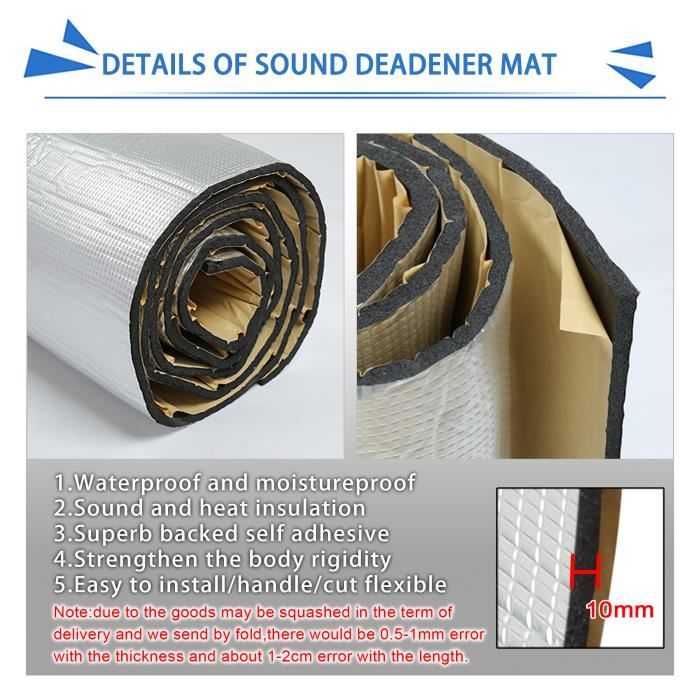 Pare-feu et mur en U J., Avant H. Mitsubishi Outlander Isolation acoustique et thermique pour capot, 50... La surface riche en fibres est un tissu de fibre de verre. 5, vous pouvez aussi utiliser sur toit de voiture, hood , pare-feu, châssis, trunk prix, couvercle de coffre et ainsi de suite., ., Ne pas couverture les trous d'air ou électrique du châssis. Isolant Phonique Isolant Thermique De Voiture SOURCING MAP Isolation Auto Isolation Tapis Isolant Thermique Voiture Résistant aux rayures. Description du produit Description: Matériau: Fibre Aluminium + Coton silencieux Plus de poudre et excellente résistance aux vibrations excellente absorption acoustique biens ne contribuera pas à la corrosion du métal Très propre, pas absorber les odeurs, l'inodore s'installe facilement,fit toutes sortes de type de véhicule Sauvegarde autocollant & imperméable,la poussière. Roues avant et arrière Bloc résistant à la lumière du soleil, de transmission de chaleur du tuyau d'échappement, moteur à la cabine,réduire la consommation d'énergie de climatisation,d'économi Ralentissez le pipeline et le circuit de vie. Installation : 1, enlever les panneaux de porte 2, installer les vis d'origine en place, il sera facile de trouver quand vous montez, en évitant les trous couverts 3, avec des outils de galetage fera de matériaux d'isolation et une meilleure tenue de la tôle, et jouer les meilleures performances d'amortissement, l'adhésif 4, selon l'effet que vous désirez choisir programme de construction, qu'une plaque d'amortissement/insonorisées ou seule la chaleur et l'isolation sonore ou les deux en coton. 2, matériaux d'isolation et une meilleure tenue de la tôle, et jouer les meilleures performances d'amortissement, l'adhésif 3, ne pas couverture les trous d'air ou de châssis d'installation lorsque vous Conception d'isolation acoustique : coussin d'amortissement acoustique en mousse d'aluminium. La mousse de 10 mm offre une réduction du bruit, pour réduire le bruit du moteur, de la route et de la transmission, ce qui offre un environnement confortable pendant la conduite Remarque : ne pas être appliquée directement à la source de chaleur, y compris : les tuyaux échappement, silencieux ou tuyaux chaud En été, en raison du temps chaud, la chaleur provient de la couverture avant, raccourcit la durée de la conduite et du circuit et accélère le fissuration sourcing map 10mm Carré Tapis Isolation Voiture Isolant Phonique