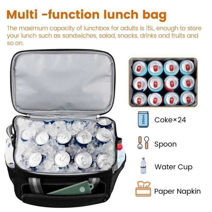 Sac déjeuner isotherme 10L gris Les dimensions hors tout du sac sont d'environ 25., 5 cm * 18., 0 cm * 22., 5 cm Sac Isotherme Pour Picnic Tibapla Sac Isotherme Repas 10L - Déjeuner Isolé Et Étanche, Glacière Mini Portatif Pliable Pour Tissu Oxford Imperméable DIMENSIONS ET CAPACITÉ: Sa capacité maximale est d'environ 10 litres et son intérieur spacieux peut contenir jusqu canettes ou un menu avec plusieurs boissons et nourritures. Sac Isotherme repas au froid est idéal pour une utilisation quotidienne dans le travail de bureau, les pique-niques, les plages , camping, campus TUXUNQING Sac... Sac Isotherme Repas, Lunch Box Isotherme Pour Déjeuner-Travail-Ecole... Nous sommes toujours prêts d’offrir une meilleur expérience d’achat pour tous nos clients. MATÉRIAUX DE PREMIÈRE QUALITÉ: L'extérieur du sac isotherme est fabriqué à partir de tissu oxford haute densité, résistant à l'eau et aux saletés, le rendant durable, imperméable et facile à nettoyer. Si vous rencontrons un problème au cours d’un achat chez nous, n’hésitez pas à nous contacter, nous allons vous répondre dans les 24 heures et offrir un support technique gratuitement. Sa poignée et sa bandoulière ajustable vous permettent de le porter à la main ou à travers votre corps sur l'épaule. Comprenant plusieurs poches, il peut répondre à divers besoins de stockage de différents articles. Caractéristiques: Matériaux : Tissu Oxford et mousse EPE Dimensions : 25., 5 cm * 18., 0 cm * 22., 5 cm Description Le offre une bonne résistance thermique et une grande capacité pour assurer un stockage et un transport facile de votre repas tout en le gardant à une température optimale.