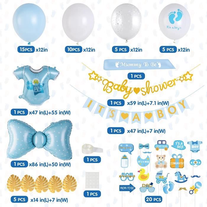 Idéal pour l'anniversaire, thème Baby Shower, Créer une atmosphère douce et chaleureux. Ruban Blanc 5m Suspension Baby Shower Banner Boy It's A Boy Baby Shower Banner - Blue & Gold Gender Reveal Decoration Baby Sprinkle Decorations Décoration Murale Ruban Inclus Conviennent à la suspension extérieure et d'intérieur. 71x35 inch Sky Blue It's A Boy Banner with Hanging Rope Baby Shower Party Supplies Rectangle Polyester Hanging Sign with Bottles Footprints Pattern for Outdoor & Indoor Decor Emballage inclus: 2pcs Baby shower bannière + 2pcs ruban blanc (Besoin de l’assembler vous-même bricolage). Facile à assembler , robustes et réutilisables. OLILLY - Ruban Bleu et Or pour Baby Shower - It's a Boy - Décoration de votre Fête Prénatale (It's a Boy 22mm) · 4,7... Taille d'alphabet : 12*13cm , ruban blanc: 5m. vous obtiendrez une fête colorée. La distance entre les lettres peut être librement ajustée. Banner It's a BOY Baby Shower Banner Printable Baby Attention : Peut-être avoir un écart de 1 à 2 cm en raison de mesurer à la main. Les couleurs sont magnifiques et l'effet de prendre des photos est excellent.