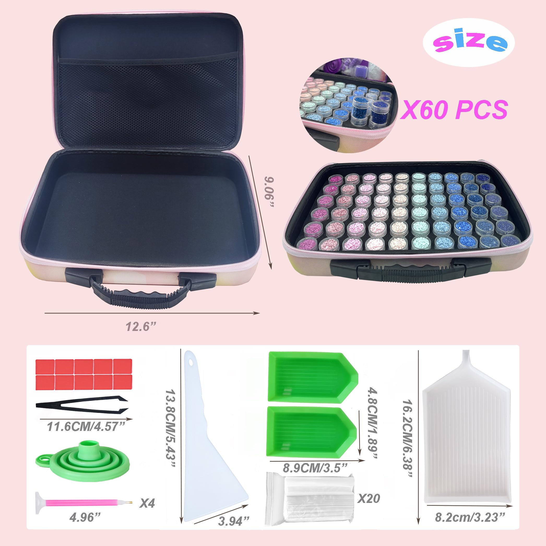 Protection et portabilité : protégez vos précieux accessoires de peinture diamant, plateaux, forets et toiles contre les dommages. Cukol Cukol Boite Rangement Diamond Painting, 60 Grand Emplacements Kit Peinture Broderie Diamant Diamond Painting Accessoires Boîte Rangement Outils Valise : : Cuisine et MaisonDemandez le retour de ce produit jusqu'à 14 jours après sa réception, sans motif, pour en obtenir le remboursement complet (prix et frais de livraison) au titre du droit légal de rétractation. De plus... Polyvalence et gain de place : nos options polyvalentes de plateau de peinture diamant répondent à une gamme de travaux manuels et de loisirs au-delà de la peinture diamant. Merci de me considérer comme votre vendeur incontournable pour tous vos besoins de rangement d'accessoires de peinture diamant. Boite Diamond Painting Boîte De Rangement Diamond Painting JULYKAI Diamant Peinture Outil Valise Conception Diamant Boite De Rangement Diamond Painting Boîte Rangement Diamond Painting Grande capacité : il est difficile pour une peinture diamant typique de dépasser 120 couleurs, ce qui est la même taille et le même volume que 120 emplacements de rangement pour peinture diamant. Que vous soyez un amateur, un artiste professionnel ou quelqu'un à la recherche d'un moyen pratique de ranger et d'organiser vos fournitures de peinture diamant, j'ai les solutions parfaites pour vous. Conçues pour les passionnés de déplacement, nos solutions portables vous permettent d'emporter vos projets n'importe où, assurant confort et tranquillité d'esprit. Optimisez votre espace de stockage avec des dispositions intelligentes qui gardent votre espace bien rangé et sans encombrement. Facile à utiliser et durable : un étiquetage clair et des fonctionnalités intuitives facilitent le stockage et la récupération des fournitures. Je m'efforce de répondre rapidement aux demandes, de répondre aux préoccupations et d'aider les clients tout au long du processus d'achat. Trouvez rapidement tout ce dont vous avez besoin, rationalisez votre flux de travail et éliminez la frustration des articles égarés. Description Cette boîte de rangement Kinsinder, c'est l'organisateur rêvé pour tes projets de diamond painting ! Avec ses 60 emplacements, tu peux ranger toutes tes couleurs de diamants sans mélange. Fabriquée en EVA durable et imperméable, l'intérieur est capitonné pour protéger ton matériel. Chaque petit pot mesure 2,5 x 5 cm - parfait pour les diamants ou autres petits accessoires... Je comprends l'importance d'avoir un espace de travail bien organisé pour les amateurs de peinture diamant, et mes solutions de stockage sont conçues pour rationaliser le processus et améliorer l'expérience globale. Accessoires de peinture diamant Contenu : étui de rangement pour peinture diamant, 60 bouteilles (diamants non inclus), 2 plateaux de peinture diamant, 8 x cire de peinture diamant, 1 x pince à épiler et une cuillère, 3 x stylos pour peinture diamant et poignées anti-fatigue, 100 étiquettes de peinture diamant, 1 entonnoir de peinture diamant Boite de Rangement pour Diamond Painting - FOLAYA - 60 Emplacements