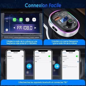 Sencor SWM 4545 BT FM transmitter 87.5 - 108 MHz Bluetooth Profitez d'appels mains libres avec un microphone intégré doté de la technologie de suppression du bruit, vous permettant de répondre aux appels facilement et... Transmetteur Fm écran Led Rgb TD® Transmetteur FM Bluetooth Voitures Jack Kit Mains Libres Adaptateur Sans Fil Avec Chargeur Voiture Bluetooth Le microphone haute sensibilité intégré et la suppression du bruit CVC garantissent une qualité audio exceptionnelle. CONNECTIVITÉ MULTIPLE: Transmetteur FM avec ports USB Type-C, USB 3., 4A et support carte TF jusqu'à 32 Go pour une charge rapide et lecture multimédia JaJaBor – transmetteur FM sans fil AUX 3.5MM, récepteur Audio, carte TF, musique, lecteur MP3 pour voiture, Bluetooth 5.0, Kit mains libres · Nouveau briquet... Idéal pour diffuser votre musique et gérer vos appels en toute sécurité pendant la conduite. FORMATS COMPATIBLES: Lecture de fichiers audio multiples (AMM, WAV, SINGE, FLAC) avec interface intuitive et affichage LED numérique COMMANDES TACTILES: Interface tactile ergonomique avec boutons pour la lecture, le volume et la gestion des appels téléphoniques ÉCLAIRAGE RGB: Design élégant avec bande lumineuse RGB personnalisable autour du dispositif pour une ambiance unique