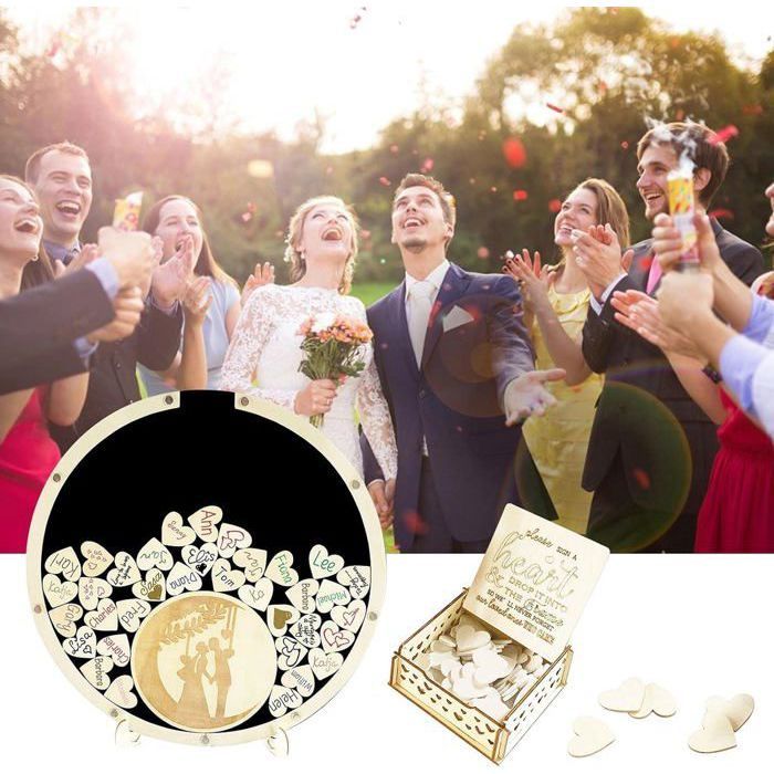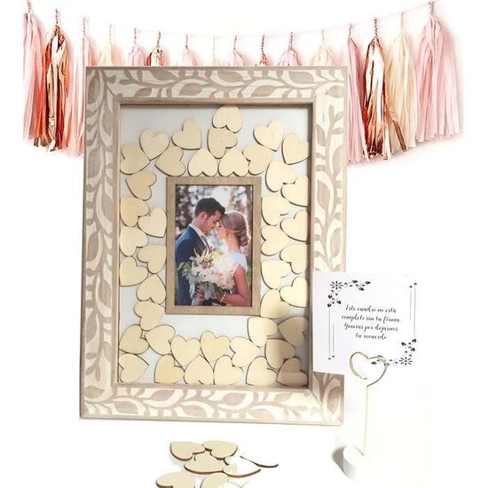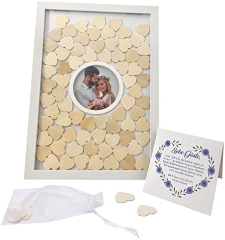 Cadre Photo 3D En Bois À Remplir,Cadre Photo 3D Shadow Box,Cadre... Le cadre photo Jandiklee pour livre d'or est polyvalent et peut être utilisé non seulement pour les mariages, mais aussi pour les anniversaires, les baptêmes et de nombreuses autres célébrations. Il peut être placé verticalement et horizontalement et suspendu. Carte d'instructions (français non garanti) La carte fournie est joliment conçue des deux côtés et est formulée pour différentes occasions. Les crochets de suspension et le support sont déjà fixés à l'arrière. Description du produit Un souvenir spécial de votre fête Le cadre blanc avec des cœurs inscrits et une image des jeunes mariés ou des enfants baptismaux est un merveilleux souvenir de votre fête Laissez vos invités signer ou peindre un cœur et le jeter dans le cadre photo. Elle mesure 14 x 28 cm et est fabriquée en carton pour une bonne stabilité. Cadre Livre d'Or Original ou Plan de Table Cordelette et Etiquettes | Livre d'or Elle est protégée par un film de protection qui est retiré avant utilisation. Les cœurs mesurent 3,5 x 3,5 cm. Cadeau Mariage Original Avec Inserts Photo Jandiklee Livre D'or De Mariage En Bois Avec 80 Cœurs En Bois Cadre Photo Signatures Dimensions : Le cadre mesure 42 cm de haut et 30 cm de large. L'insert photo à l'arrière du cadre est rectangulaire de 13 x 18 cm. Ainsi, vous pouvez toujours vous souvenir de ce jour spécial. La couverture en bois de nos livres d'or est disponible en plusieurs coloris et personnalisable. Il est en effet possible de graver la couverture en bois de votre livre d'or de mariage avec vos prénoms, le logo ou la date du mariage Ainsi, vous pouvez essayer des stylos assortis ou répéter des conceptions non réussies. Contenu : - 1 cadre pour livre d'or - 80 cœurs en bois (attention : Le cadre peut contenir environ 73 cœurs) - 1 carte d'instructions pour les invités - 1 sachet blanc pour conserver les cœurs - 2 panneaux arrière pour la photo, chacun avec et sans support Dimensions des cœurs : 3,5 x 3,5 cm Ainsi, les cœurs entrelacés tombent à droite et à gauche du cadre photo central. La découpe diamant de l'image de la variante 2 mesure 10,5 x 14 cm. Livre d'or alternatif : les invités prennent un cœur en bois, le signent et le jettent à travers les fentes sur le dessus du cadre