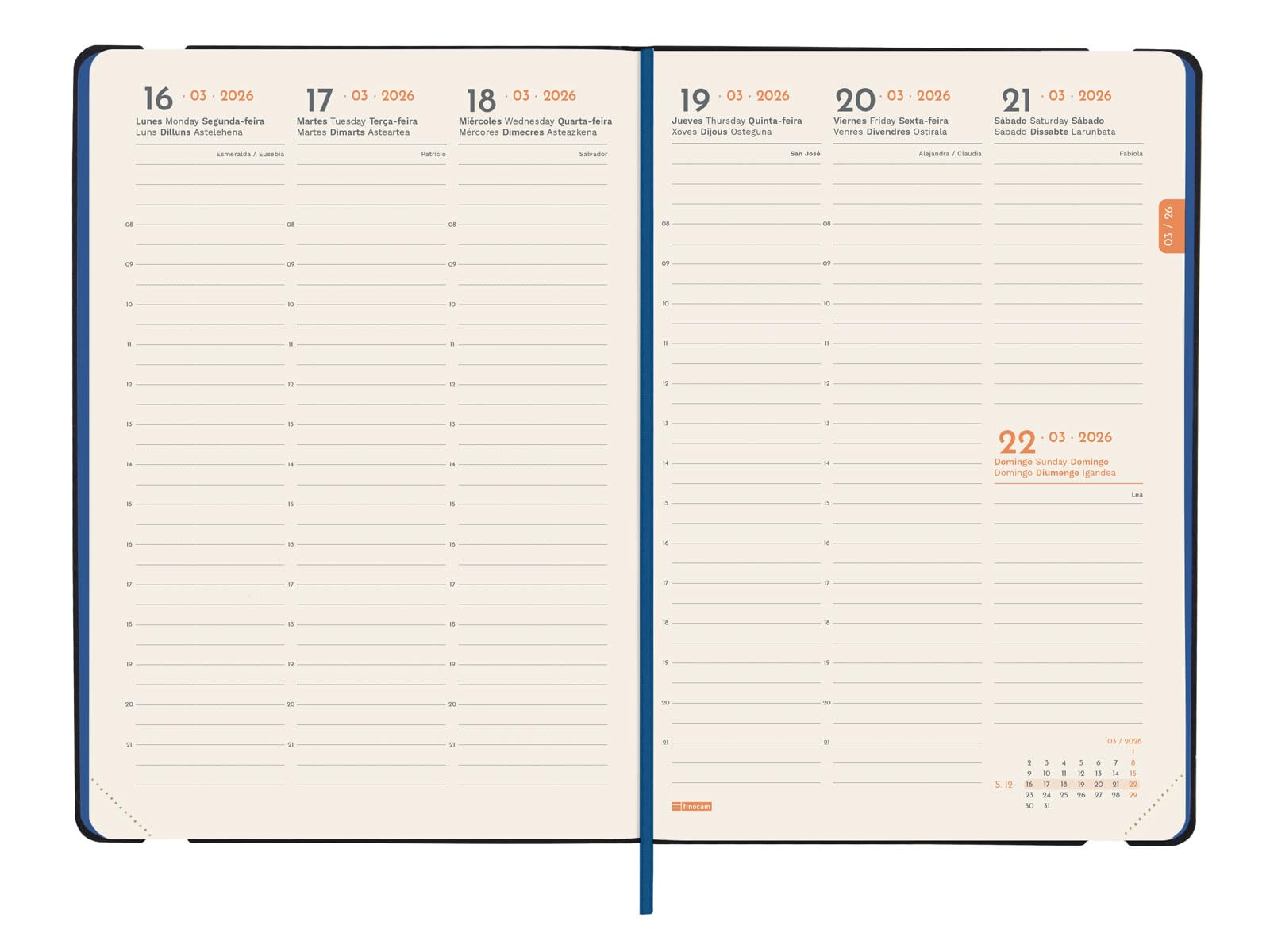 Finoca – Agenda Hebdoadaire 2023 Spirale Design Collection Janvier 2023 – Décebre 2023 (12 Affichage de la semaine complète à la verticale., Avec une demi-heure. Agenda Finocam Fiona Finocam Agenda Journalier 2026 Avec Vue Verticale Janvier-décembre (12 Mois) | Agenda Annuel 2026 | Couverture Rigide Rembourrée Berlin Coton Agenda Souple Avec élastique Coins micro-perforés pour localiser rapidement le jour/semaine en cours. Finoca - Agenda Ikon 16 ois 2023 2024 Seaine sur 2 pages Présentation verticale Septebre... Agenda 2026 Avec Vue Verticale Hebdomadaire de Janvier à Décembre (12 mois) avec élastique et 3... Matériau : polyuréthane souple et papier 80 g/m². Contenu : l'annualité de l'agenda comprend les informations relatives à l'onomastique et aux jours fériés. Les articles Finocam sont conçus pour optimiser votre organisation personnelle, rendant votre vie plus pratique, confortable et plus belle. Ouverture parfaite pour écrire confortablement. L'agenda dispose également d'autres contenus supplémentaires : données personnelles, calendriers, horaires, planning annuel en colonnes, planning mensuel quadrillé, dates de mise en évidence, feuilles de tâches et annotations et feuilles téléphoniques, adresses et e-mails. Agenda relié à couverture souple amb matériau au toucher doux et agréable.