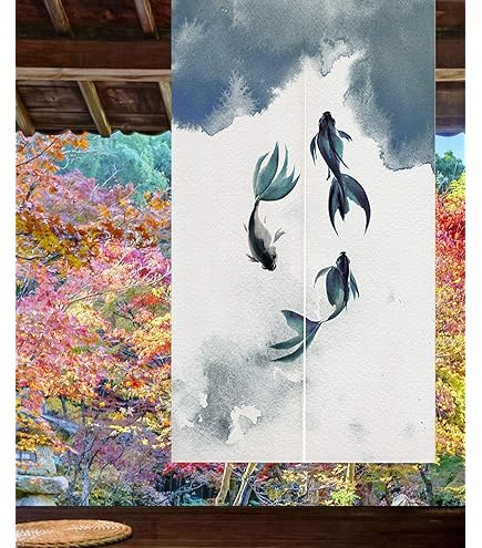 Rideau japonais Noren, séparateur de porte en coton naturel Réduction du bruit , Lavable Décoration Maison Restaurant Japonaise FATTTYCY Rideau Japonais Noren Séparateur De Porte En Bambou Vert Pour Séparation Porte Style Peinture Encre Suspendu à l'entrée des izakaya, ondulant à la porte des maisons japonaises, il incarne à lui seul tout un art de vivre. Mais au-delà de son charme discret, que cache vraiment ce rideau japonais appelé noren ? Le média a récemment expliqué l'histoire de cette étoffe aussi poétique qu'utile Akozon séparateur de rideau Rideau de douche motif poisson chat mignon...