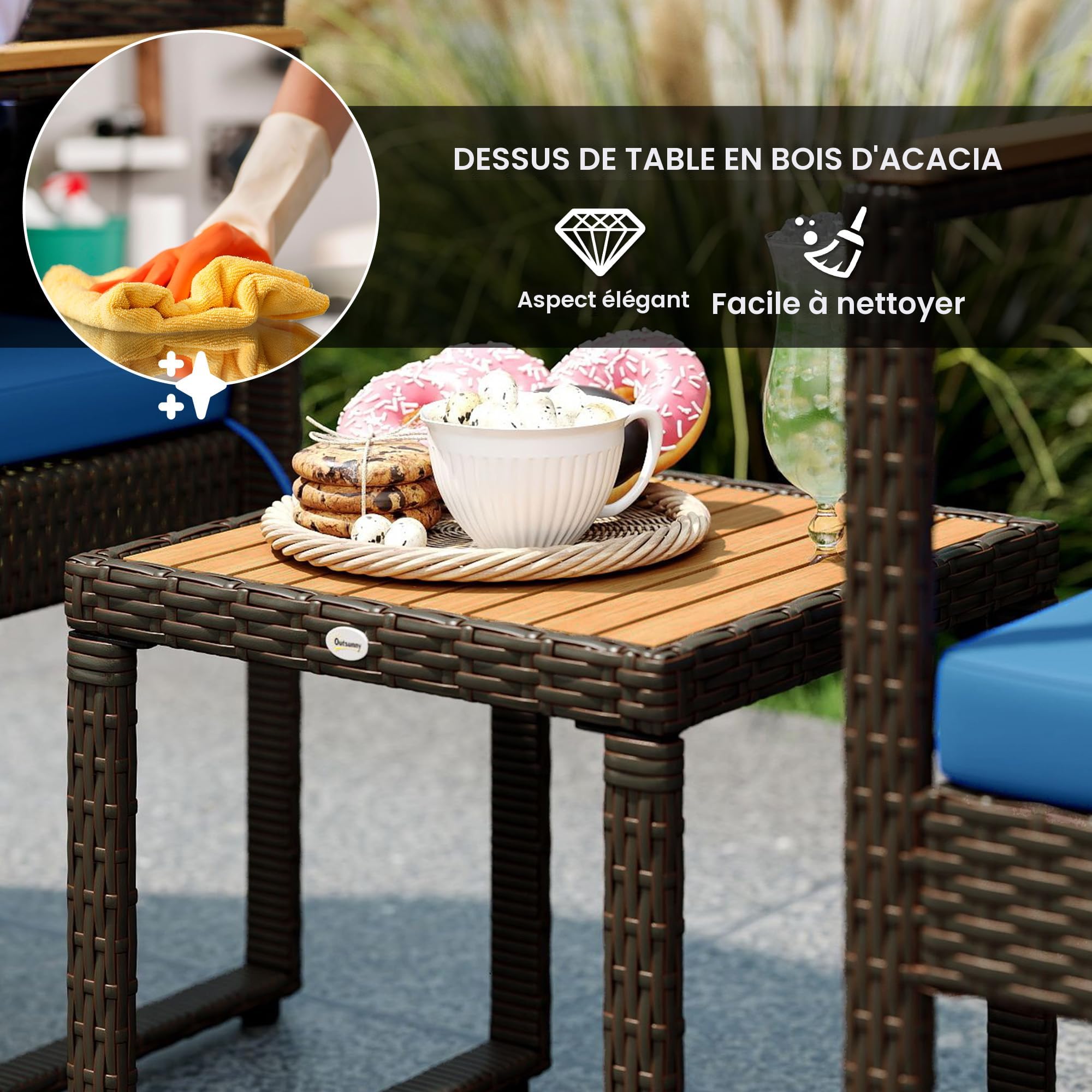 Salon De Jardin Compact Ensemble De Jardin 3 Pièces 2 Chaises Inclinables Multi-positions Pliables + Table Ronde Verre Ensemble Jardin Balcon Table De Jardin Extensible TRICONFORT Breuvery-sur-Coole 51240 Salon bas de jardn Havana résne tressée naturel, 5 personnes | Mobler jardn, Salon de... Les deux chaises ergonomiques s'adaptent parfaitement aux contours du corps et offrent un soutien optimal pour le dos. Cela vous permet de vous asseoir détendu pendant des heures, que ce soit en lisant un livre, en dégustant une boisson rafraîchissante ou tout simplement en vous asseyant et en vous relaxant au soleil. La table d'appoint complète parfaitement l'ensemble et offre suffisamment d'espace pour les boissons, les collations, les magazines ou d'autres ustensiles dont vous avez besoin pour un séjour agréable en plein air. Ce salon de jardin de qualité supérieure allie confort, fonctionnalité et design moderne dans un ensemble parfait. Un autre point fort de cet ensemble de meubles de jardin est sa grande capacité de charge – avec jusqu'à 130 kg par chaise, il est particulièrement stable et durable. En outre, l'ensemble convainc par son montage facile et rapide. Cet ensemble de mobilier de balcon 3 pièces est spécialement conçu pour les petits espaces : balcon couvert, véranda, ou même comme salonette dans votre living. Salon de Jardin Mosaïque | Table Ronde (/H: 60x70cm) et 2 Chaises Pliantes, Rouge-Blanc...